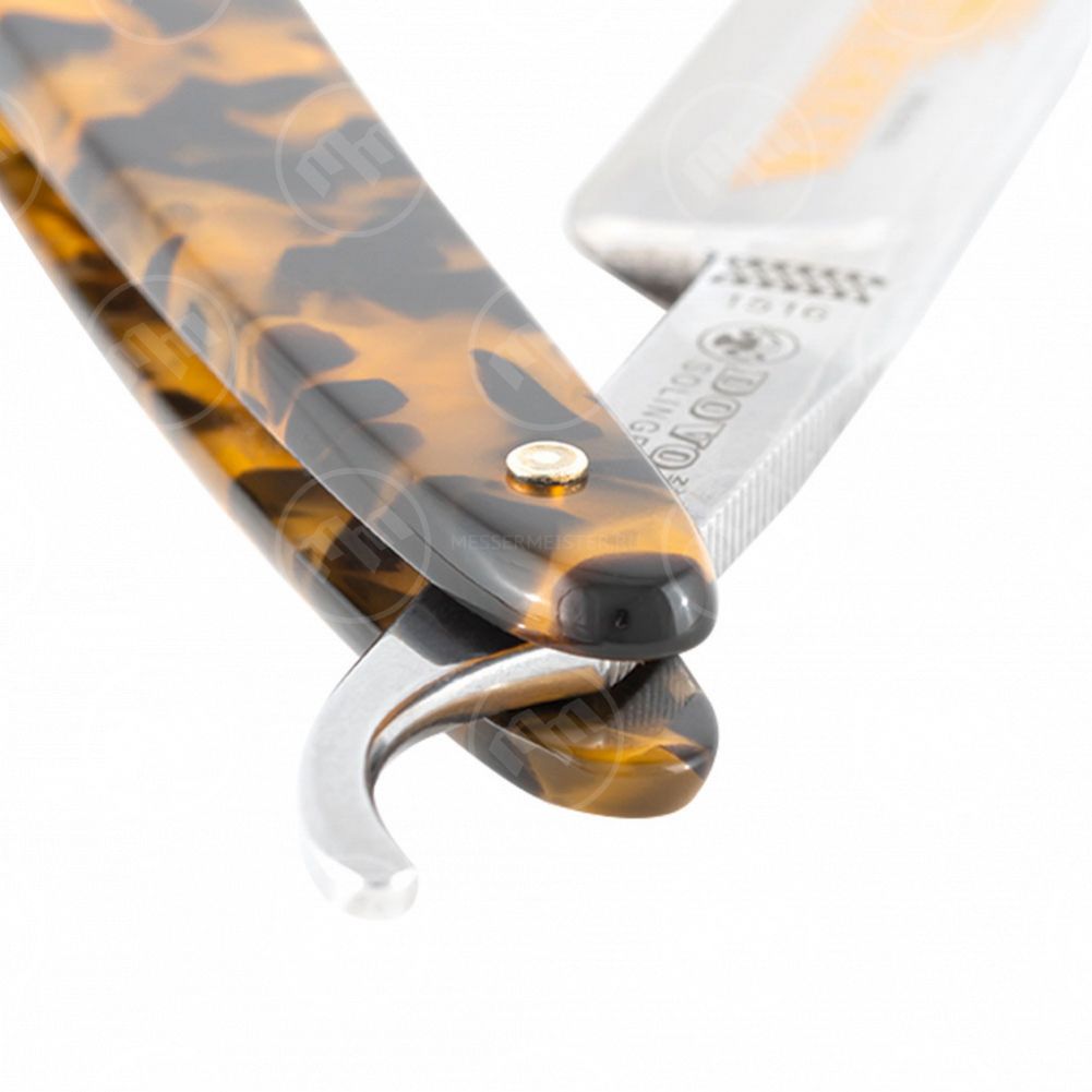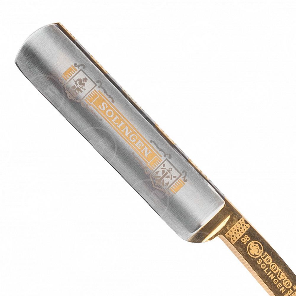 Процесс производства бритвы довольно трудоемкий, он проводится вручную по немецкой технологии, разработанной около 100 лет назад. Эта опасная бритва изготовлена из углеродистой стали 1.2210, более известной как серебряная сталь. Чтобы добиться твердости примерно 61 HRC, материал нагревают до температуры более 1000 градусов по Цельсию, а затем сразу же закаливают в специальном масле. Последующая закалка при температуре около 200 градусов Цельсия придает клинку эластичность и прочность. Орнаменты красиво позолочены 24-каратным золотом. Заточка лезвия осуществляется мастерами вручную, при этом оно проходит несколько стадий, начиная от крупнообразивных камней и заканчивая мягкой кожей.