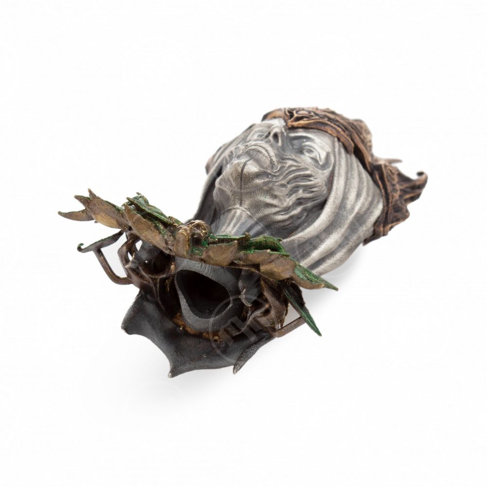 Части выполнены из разных материалов: головной убор - бронза, голова - белый металл, бусы - латунь