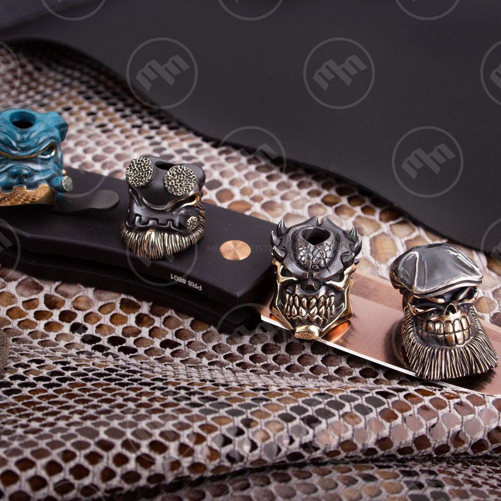 Стильные металлические аксессуары братьев Пешковых способны придать любому ножу индивидуальность и особенный стиль, в полной мере отражающий характер его владельца. Изготовленные по уникальной технологии, бусины отличаются долговечностью, практичностью и большим сроком сохранения внешнего вида.