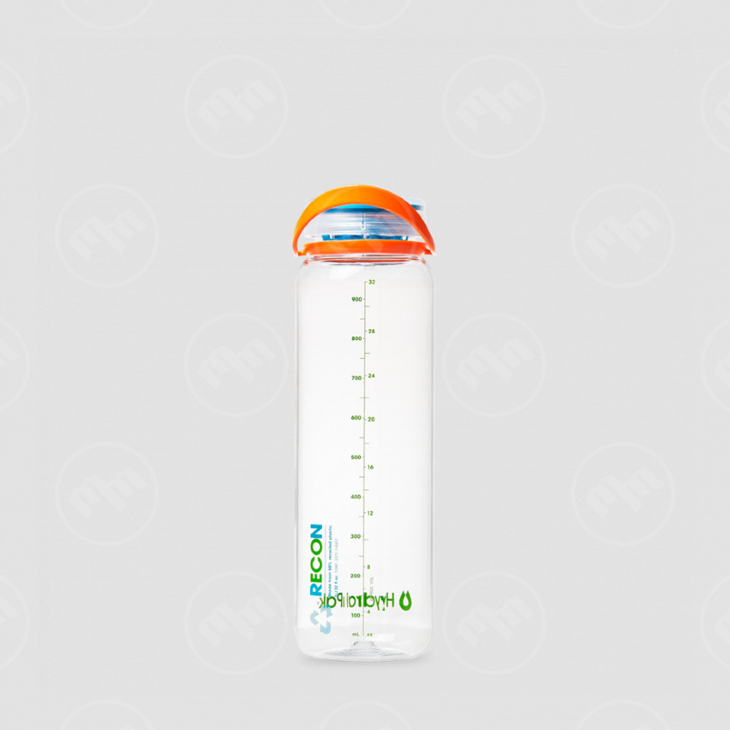 Бутылка для воды HydraPak Recon, созданная на 50% из Tritan, ударопрочного, долговечного, устойчивого к пятнам и запахам полиэстра.