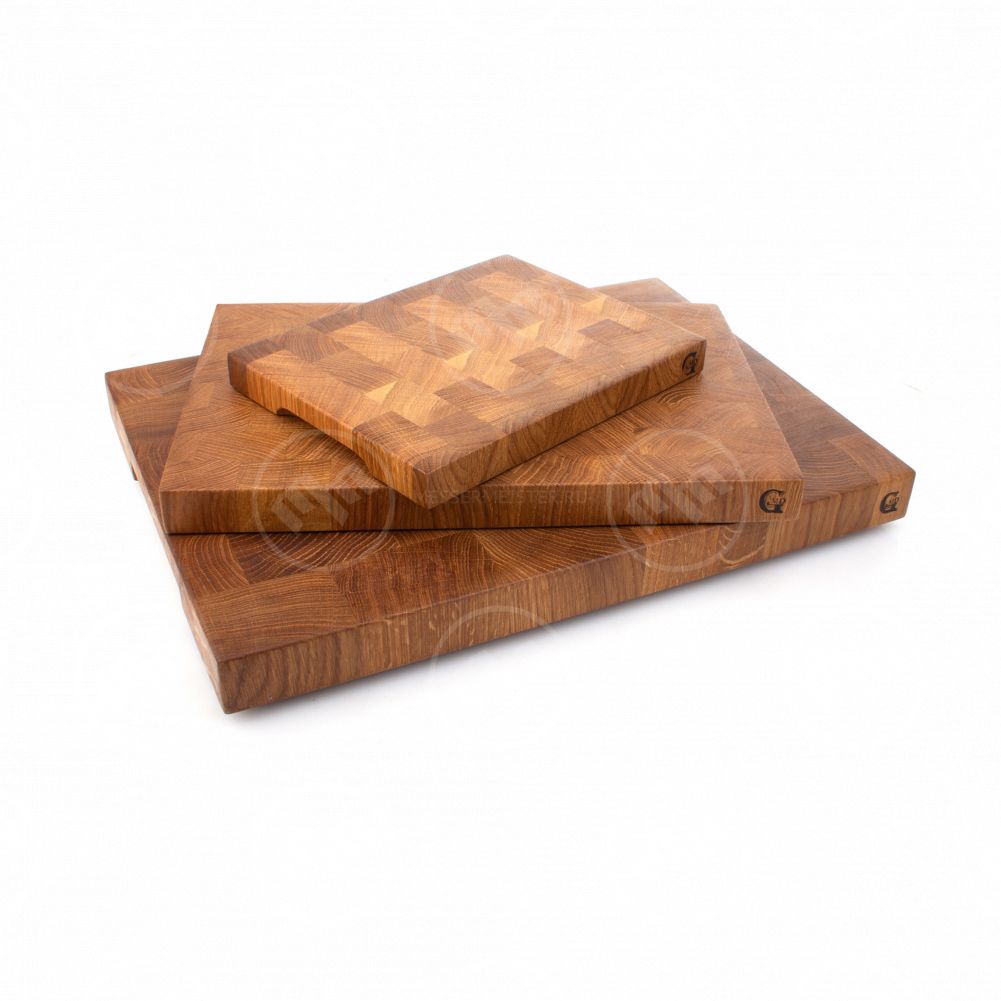 Торцевые разделочные доски изготавливаются из лиственных пород древесины. Древесные волокна в таких досках располагаются перпендикулярно плоскости реза, это позволяет защитить доски от следов реза, при этом нож намного меньше тупиться.