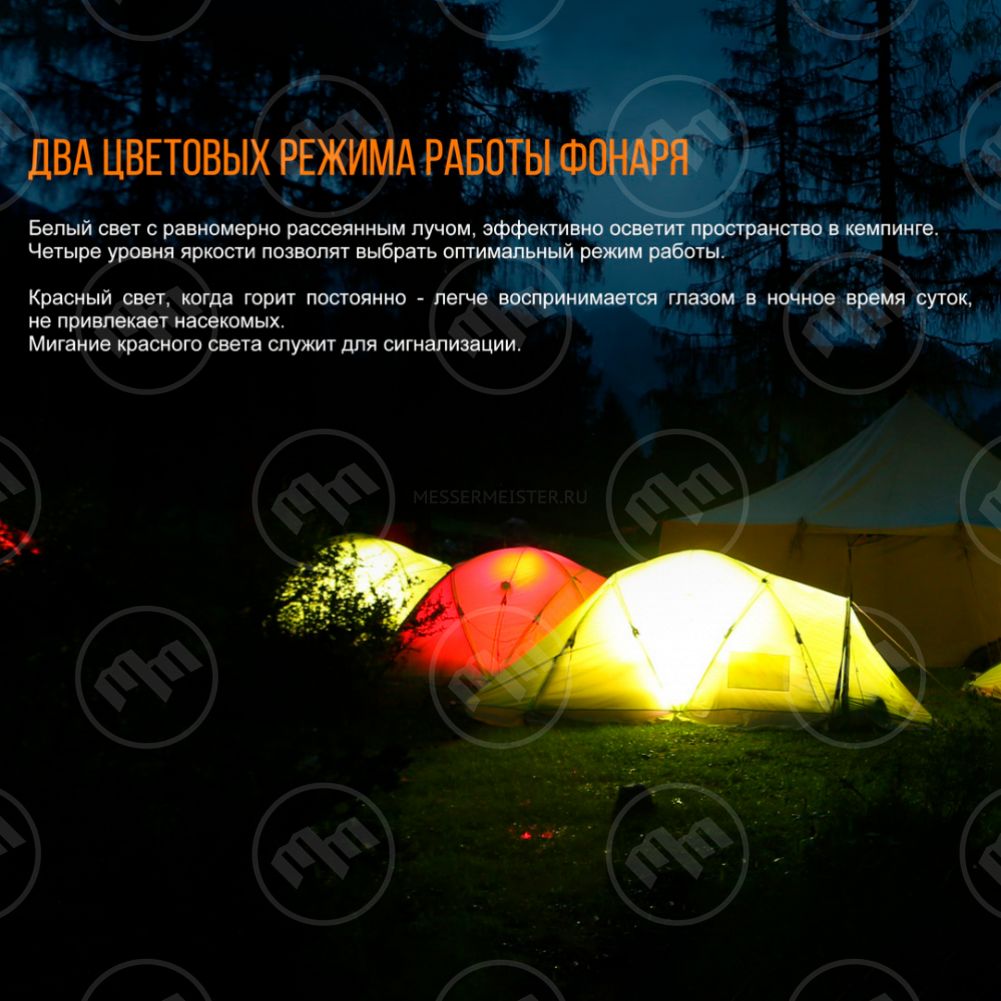 2. Med: яркость освещения - 40 люмен, продолжительность работы - 20 часов
