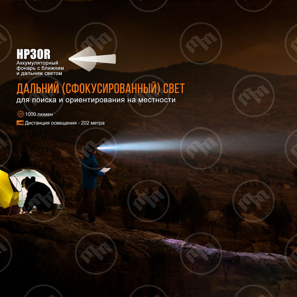 1. Турбо: яркость 1000 люмен, время работы 4 часа, дистанция 202 м