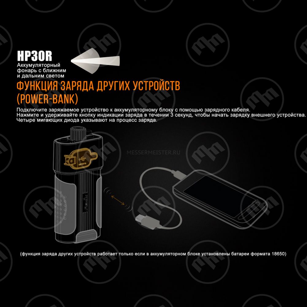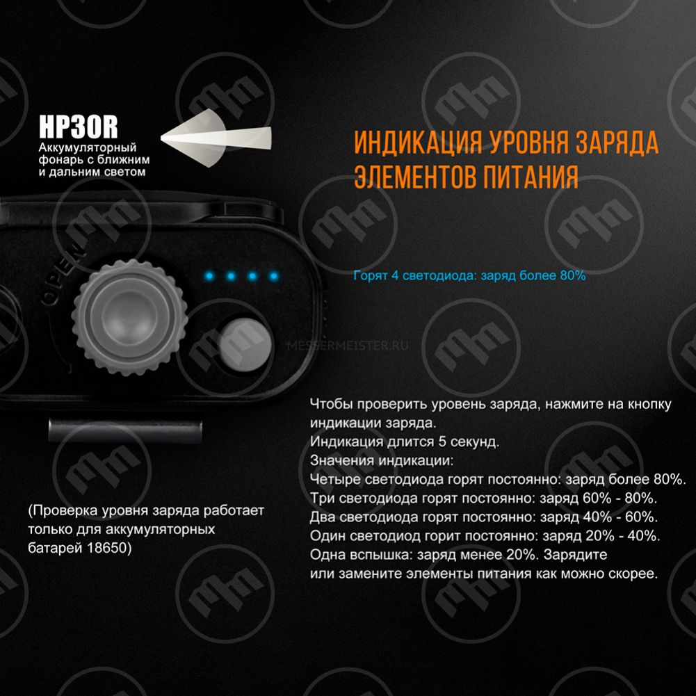 • Фонарь запоминает последний режим яркости