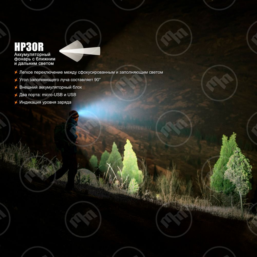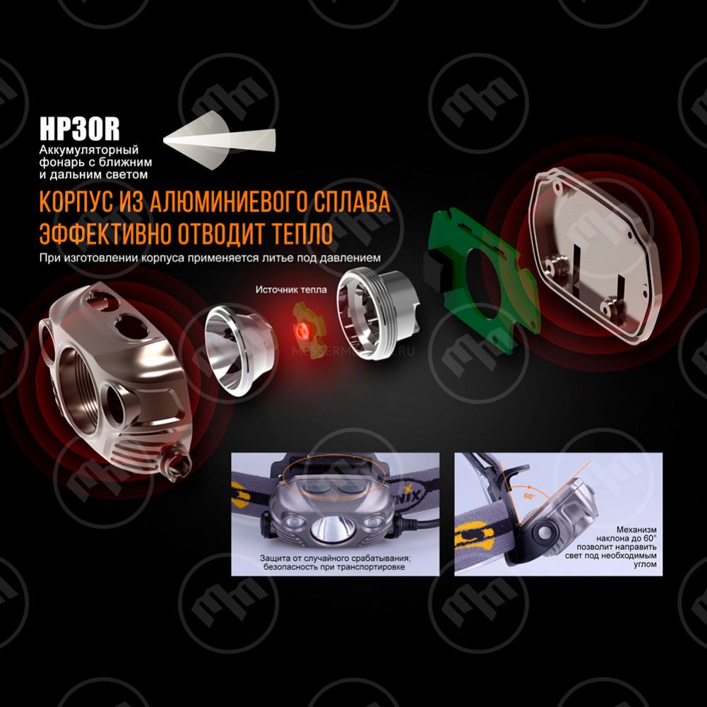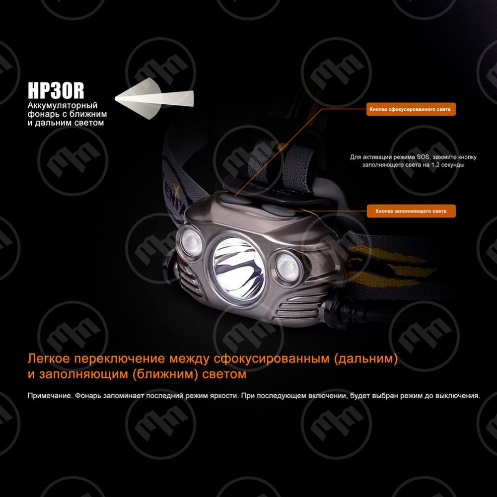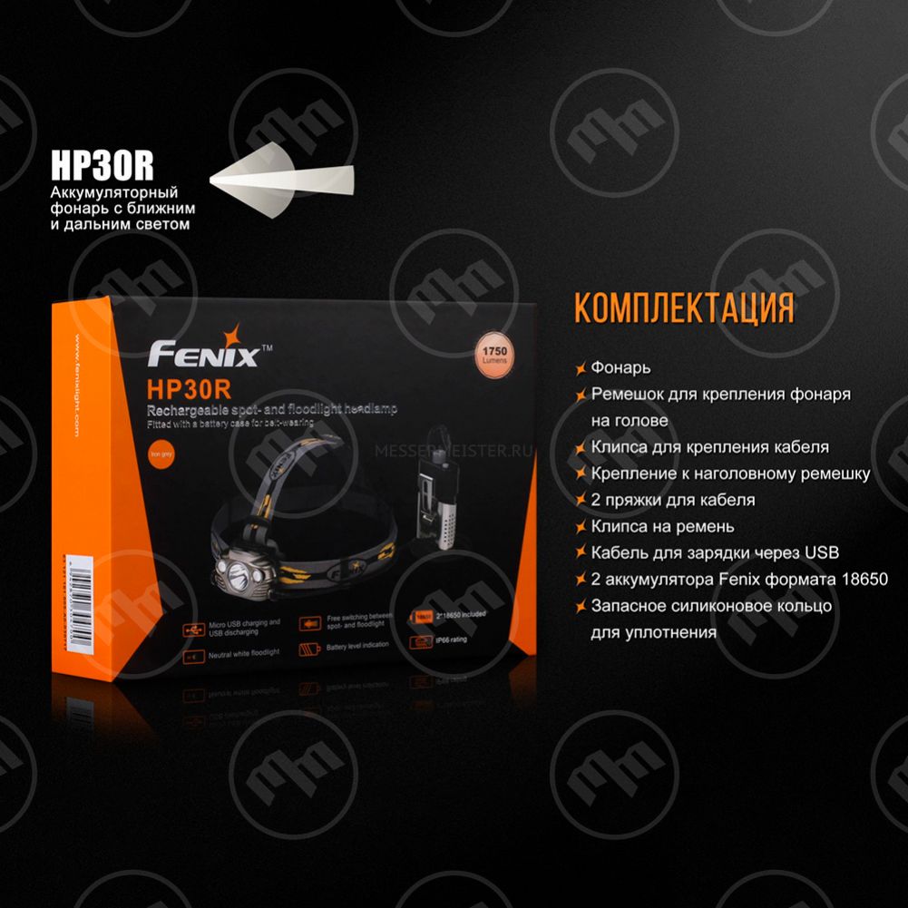 Фонарь светодиодный налобный, HP30Rblack, FENIX