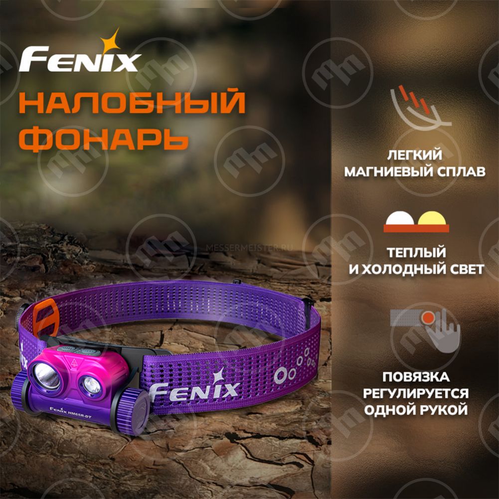 Fenix HM65R-DT разработан в облегченной версии специально для бегунов, участвующих в трейлраннинге, спортивном ориентировании и других соревнованиях, подразумевающих наличие дополнительного освещения.