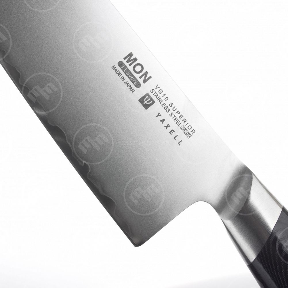 Лезвия Yaxell имеют конструкцию «сэндвича». Многослойная дамасская сталь гибка, поразительно остра и долго держит заточку, поэтому ею «оборачивают» сердечник из стали VG-10. Затем нож закаляется в печи, охлаждается льдом и снова нагревается, что делает его твердым (60–63 единицы по шкале Роквелла), прочным, высокопроизводительным, устойчивым к коррозийным процессам и долговечным.