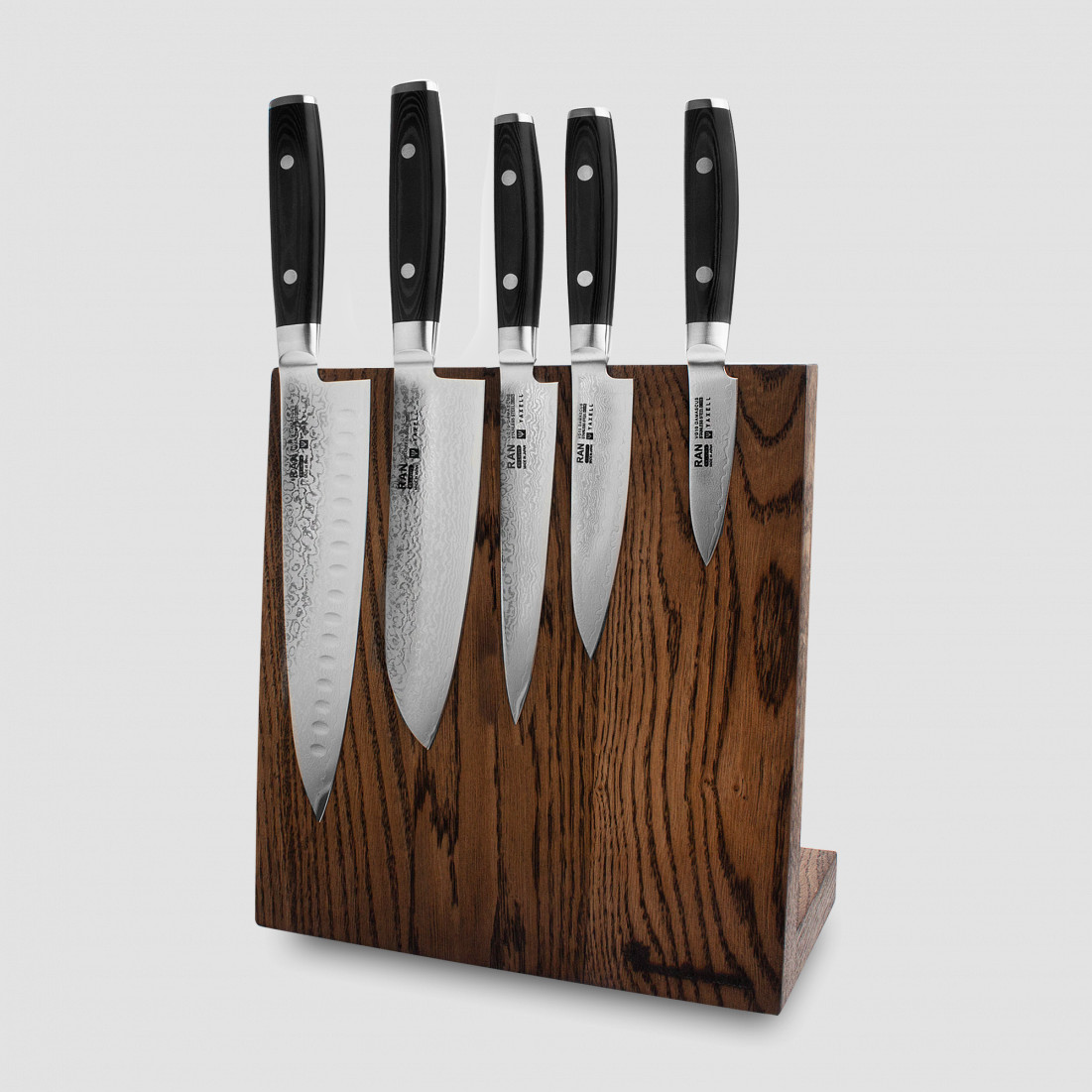 Набор из 5-ти кухонных ножей на подставке из дуба, серия RAN, YA/RAN-KS002LSOB, YAXELL