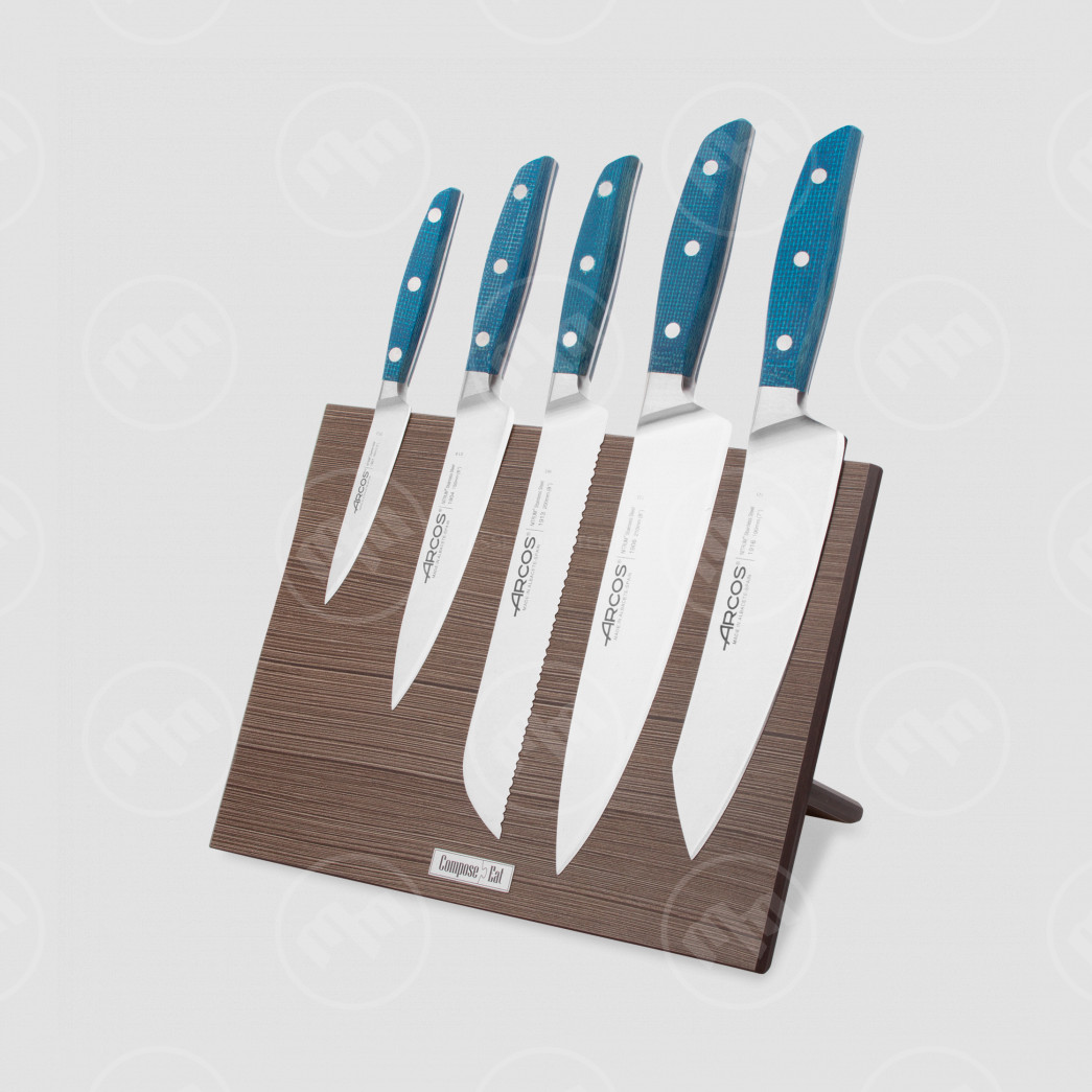 Набор кухонных ножей, 5 штук, на магнитной композитной подставке ComposeEat(темное дерево),серия Brooklyn, AR1952033, ARCOS