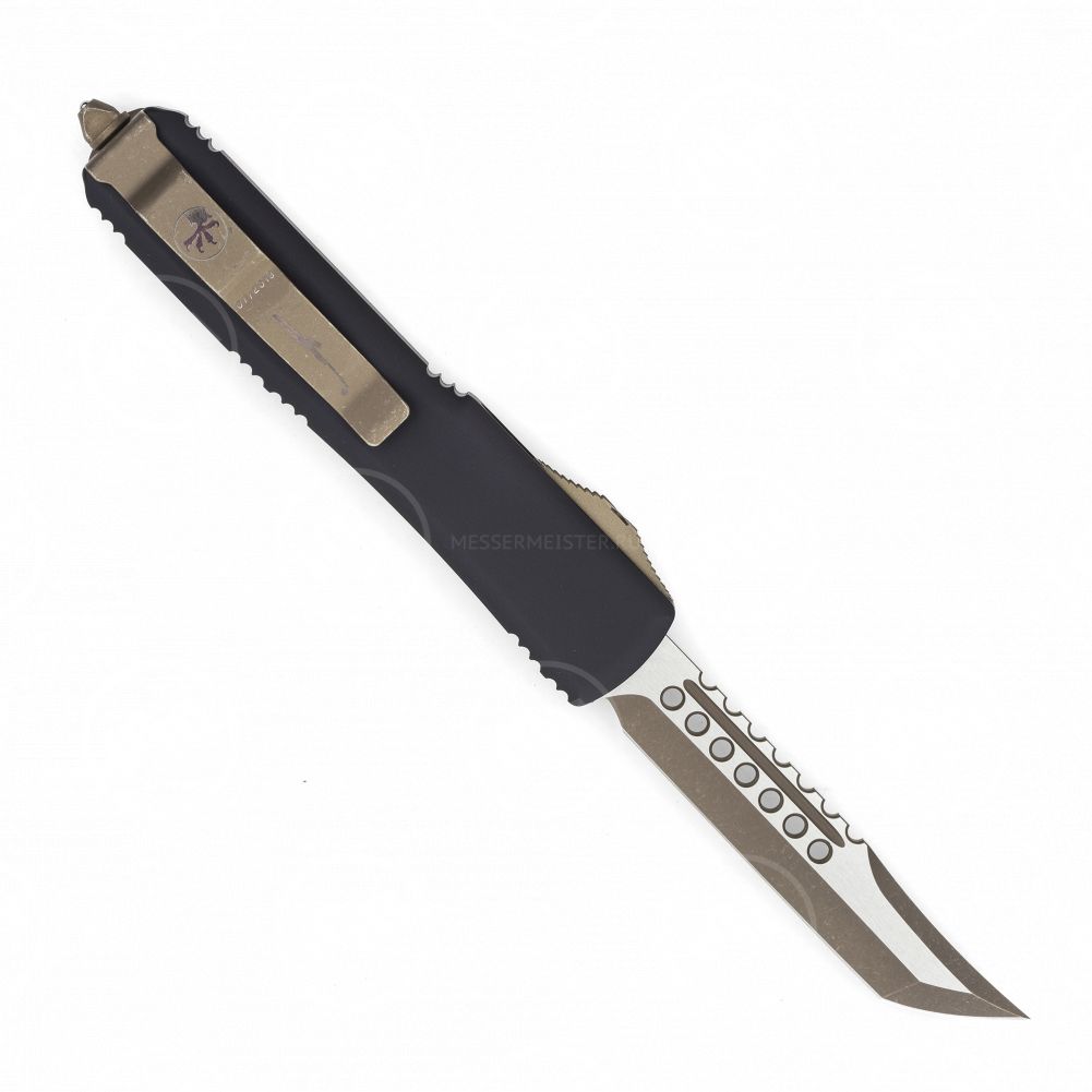 Тип замка на моделях, ставший фирменным out-the-front double auto. Тип покрытия клинка, также характерный только для Microtech stonewash + bronze dlc, обеспечит отсутствие царапин и придаст сверкающий эффект лезвию. От предыдущих моделей ножи отличаются ещё и по дизайну – на клинке над долами использованы "machine holes" или иначе – перфорация. Выглядит очень необычно и брутально, при этом облегчает клинок и добавляет ему скольжения. По собственным ощущениям – просто невероятные ножи, которые вызывают сплошной восторг.