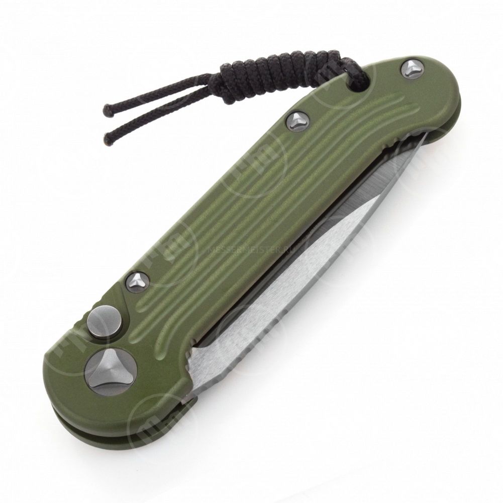 Кнопка выброса клинка утоплена в специальную выемку на рукояти, что обеспечивает защиту от случайных нажатий. При этом кнопка довольно крупная, благодаря чему её нетрудно нащупать пальцем даже если на вас толстые зимние перчатки. С точки зрения реализации управления выбросом ножи Microtech, пожалуй, одни из самых удобных какие только можно себе представить.