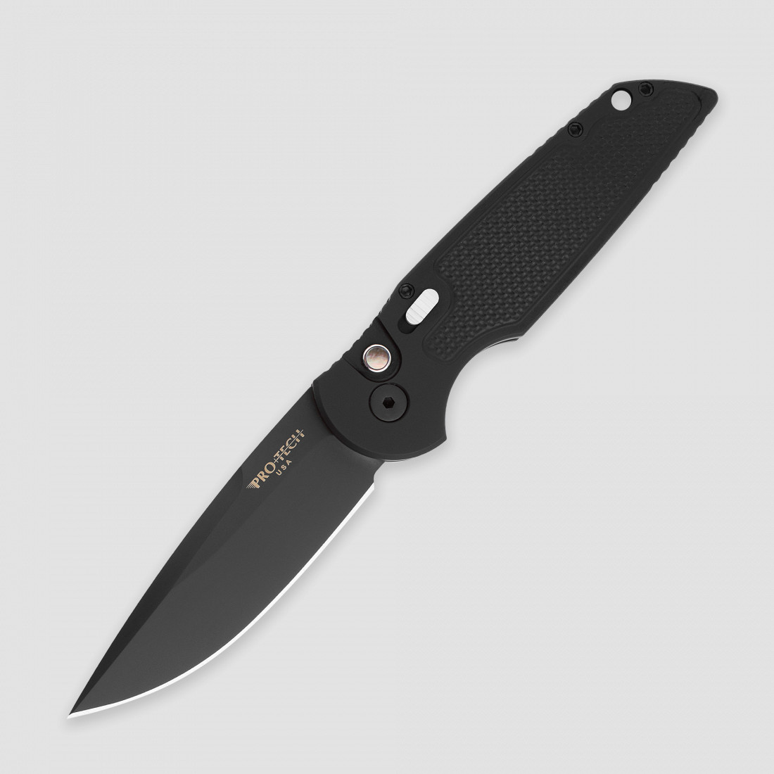 В основе всех автоматических ножей Pro-Tech лежит запорный механизм button lock. Он надежно закрепляет клинок в обоих положениях за счет двухуровневого стержня и спиральной пружины. Все компоненты этой системы разрабатываются и выпускаются на заводах компании. Результатами многочисленных исследований подтверждено, что пружина обеспечивает бесперебойное срабатывание замка до тридцати тысяч раз. И при этом сила извлечения клинка настолько велика, что нож при слабом хвате может выскользнуть из руки. Замок button lock от Pro-Tech признан лучшим в мире.