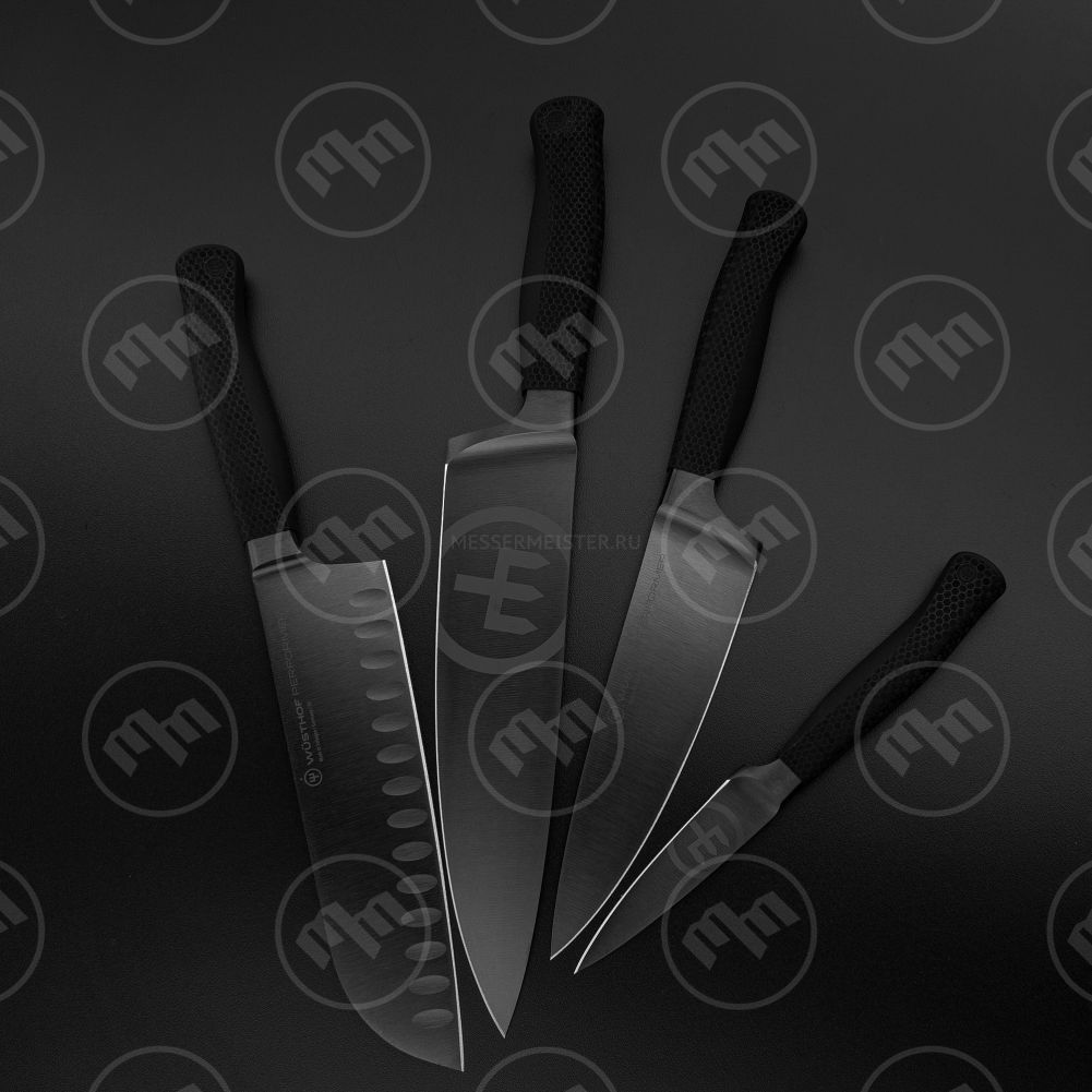 Wüsthof — более 300 различных видов ножей из нержавеющей стали. У каждого из них особая конструкция клинка, определяемая его специализацией, и идеальные характеристики для выполнения задач любой сложности. Истинно немецкие инструменты для разделки мяса, рыбы и устриц, резки и чистки овощей, нарезки хлеба стали классикой, задав стандарты в ножевой индустрии.