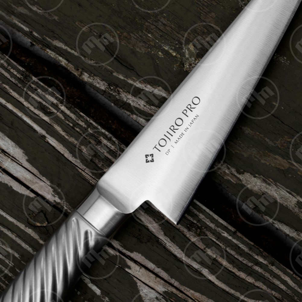 Серия Tojiro-Pro - это высококачественные ножи с трехслойным клинком и полой металлической рукоятью. Центральный слой клинка выполнен из знаменитой свой прочностью и режущими свойствами стали VG-10 от компании Takefu, закаленной до твердости 61 HRC. Обкладки из коррозионностойкой стали 420 обеспечивают клинку дополнительную прочность и защиту от коррозии.