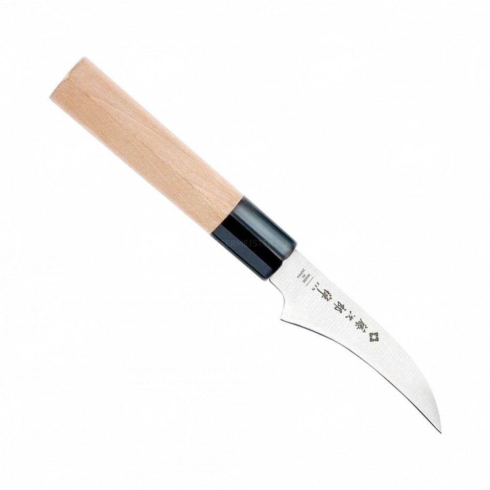 Лезвие состоит из трёх слоёв, где центральная часть традиционно выполнена из стали VG-10, которая завоевала доверие профессионалов непревзойдённой прочностью и надёжностью. Уровень закалки – 61 HRC. Особая заточка в пять этапов – фирменная визитная карточка компании Тоджиро. Благодаря такому процессу, лезвие настолько острое, что процесс резки превращается в удовольствие.