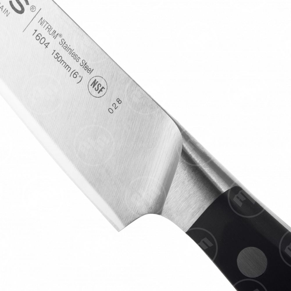 Клинки ножей изготавливаются из запатентованного сплава NITRUM, который делает металл не только невосприимчивым к воздействию любого типа коррозии, но еще и прочным, твердым и умеренно гибким. Лезвия вырезаются из цельного куска стали с помощью станков последнего поколения. В некоторых случаях они укрепляются ковкой, что делает их еще более износостойкими. Продукция Arcos отличается не только функциональностью, но еще и максимальным комфортом в использовании. В ассортимент ножей бренда входят модели, предназначенные для нарезания мяса, сыра, рыбы, разделки, очистки, а также универсальные и шеф-ножи. Все они оснащаются удобными хваткими рукоятями, отделанными накладками из качественного материала. Накладки присоединяются к полному хвостовику клинка, что сводит к минимуму вероятность слома в зоне крестовины и увеличивает маневренность самого инструмента. Кухонные ножи от испанского бренда Arcos — ваши верные союзники в освоении любых, даже самых сложных блюд.