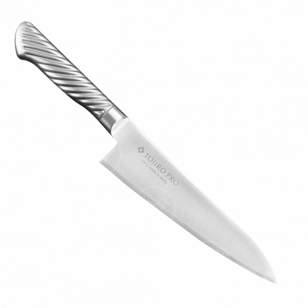 Серия Tojiro-Pro - это высококачественные ножи с трехслойным клинком и полой металлической рукоятью. Центральный слой клинка выполнен из знаменитой свой прочностью и режущими свойствами стали VG-10 от компании Takefu, закаленной до твердости 61 HRC. Обкладки из коррозионностойкой стали 420 обеспечивают клинку дополнительную прочность и защиту от коррозии.
