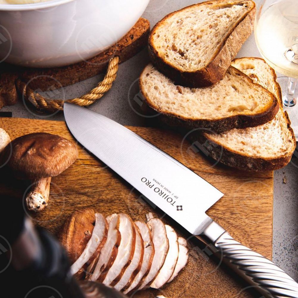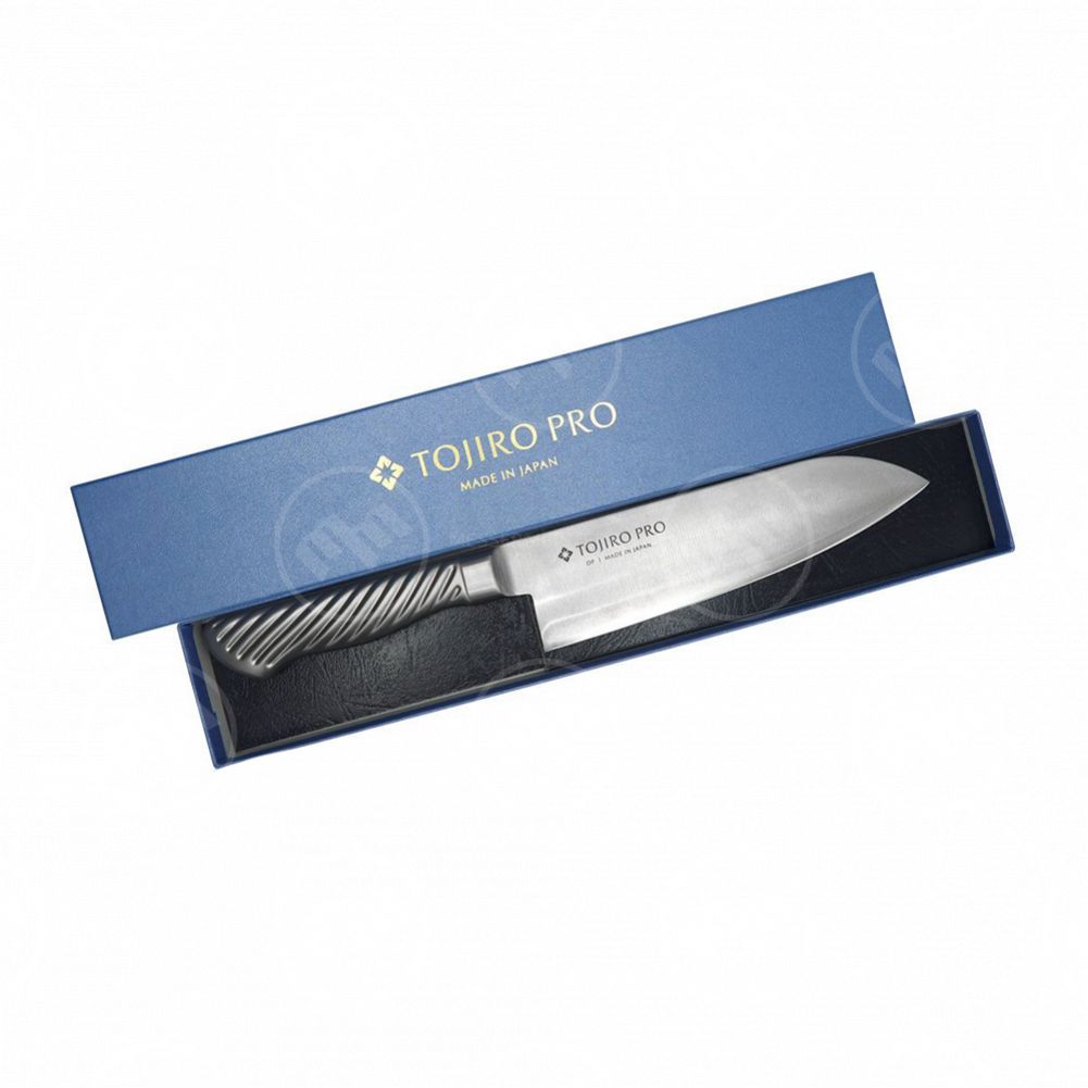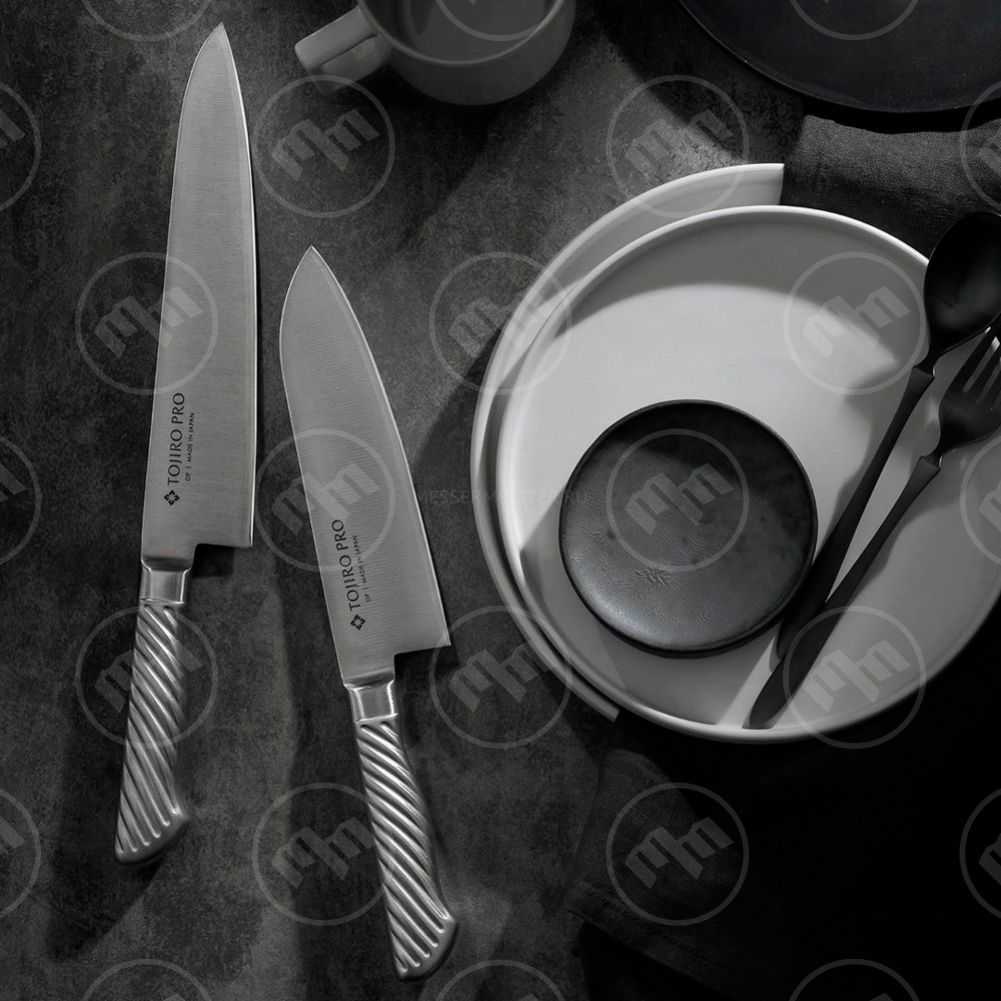 Серия Tojiro-Pro - это высококачественные ножи с трехслойным клинком и полой металлической рукоятью. Центральный слой клинка выполнен из знаменитой свой прочностью и режущими свойствами стали VG-10 от компании Takefu, закаленной до твердости 61 HRC. Обкладки из коррозионностойкой стали 420 обеспечивают клинку дополнительную прочность и защиту от коррозии.