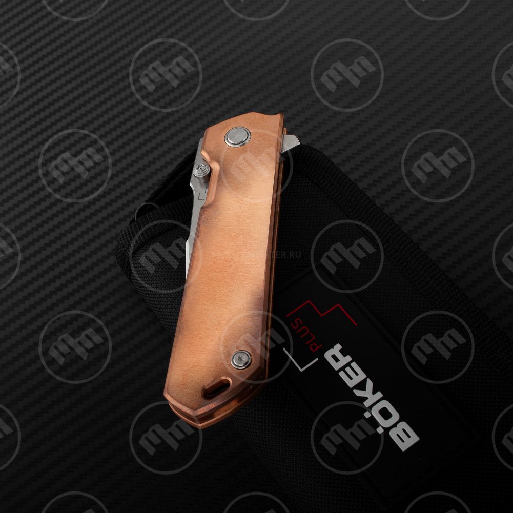 Модная тенденция делать рукояти из меди для популярных моделей ножей не обошла и знаменитый Kihon дизайна Лукаса Бёрнли. Рабочие характеристики ножа в таком исполнении несколько изменяются, однако внешний вид становится зашкаливающе необычным.