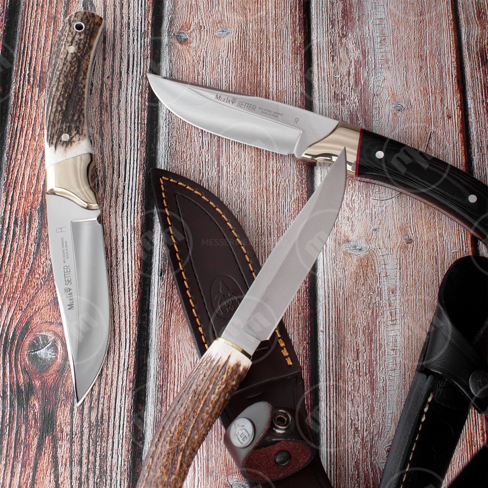 Красотой фиксированных ножей восхищаются ценители со всего света с 1952 года, когда бренд MUELA был основан в Испании. В особенности это касается моделей с рукоятьми из оленьих рогов (недаром они изображены на логотипе компании). Популярными также являются элитные сорта дерева. В бюджетных ножах применяются алюминий и термопластик. Лезвия изготавливаются из сталей 420А, 420С, 420НС, молибден-ванадиевой, дамасской и других. Твердость некоторых достигает 60 единиц по шкале Роквелла.