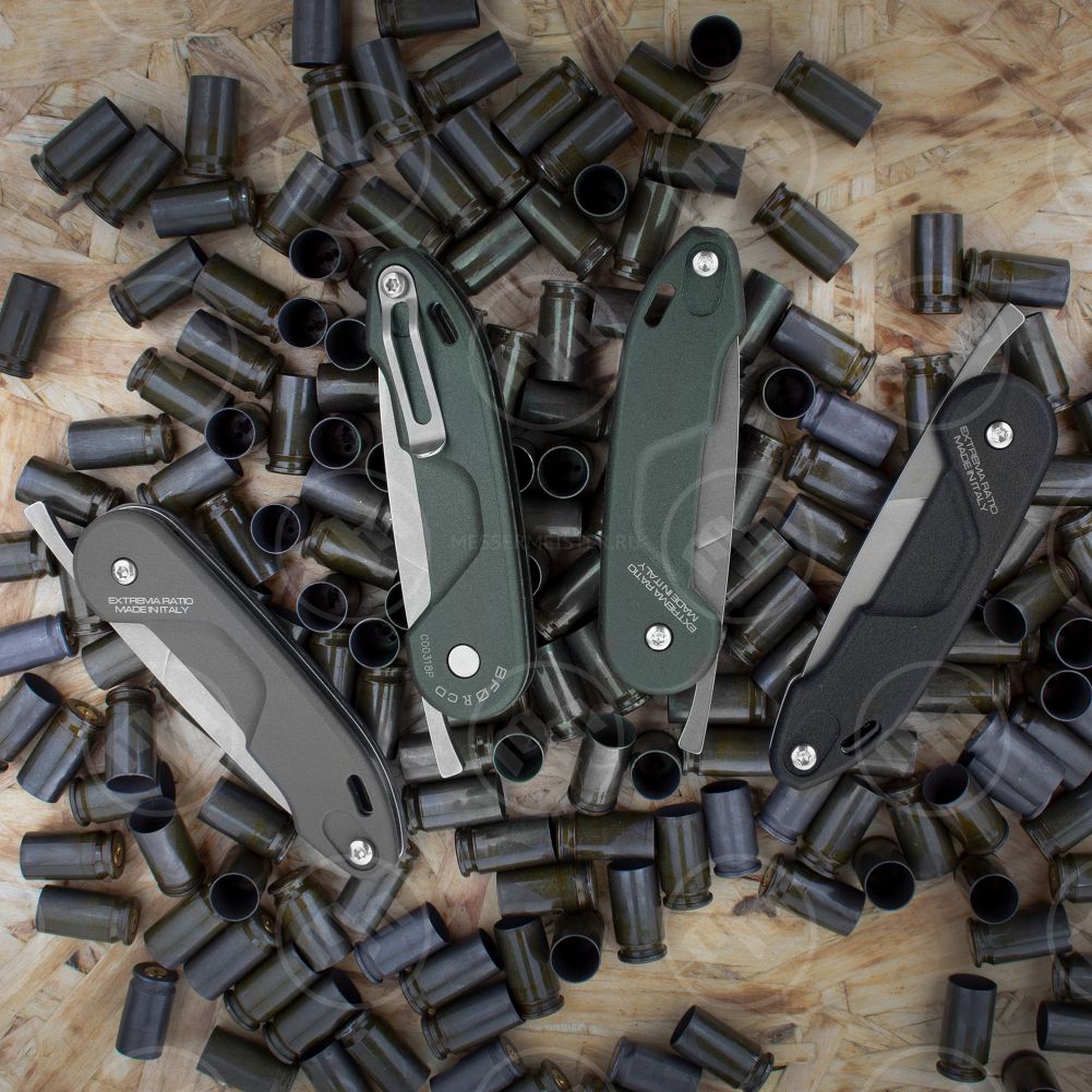 Для продления срока службы используется прочнейший материал — специальный алюминиевый сплав. Материал лезвия — высококлассная нержавеющая сталь. Матовое покрытие выглядит стильно и защищает металл от воздействий окружающей среды. Внешний вид складных ножей Extrema Ratio имеют явную военную направленность, что является не просто дизайном — компания поставляет оружие блоку НАТО.