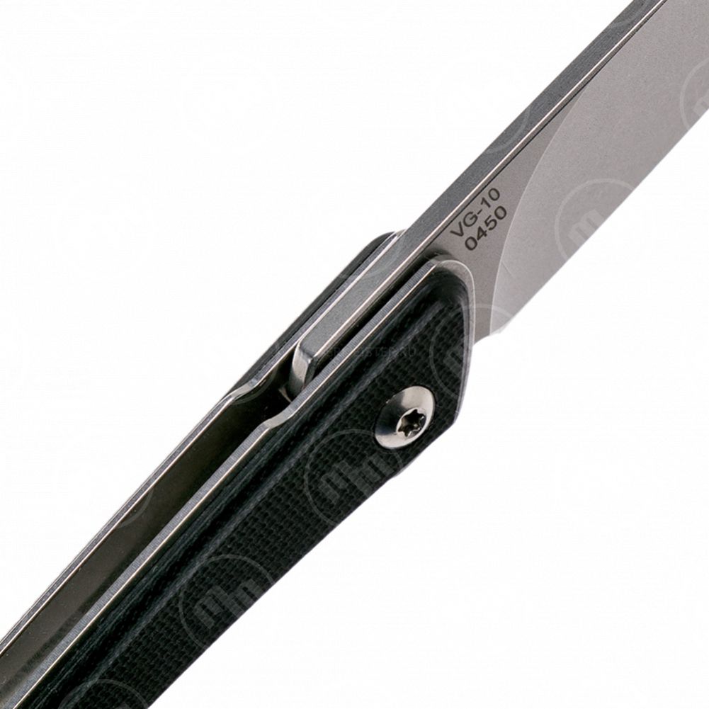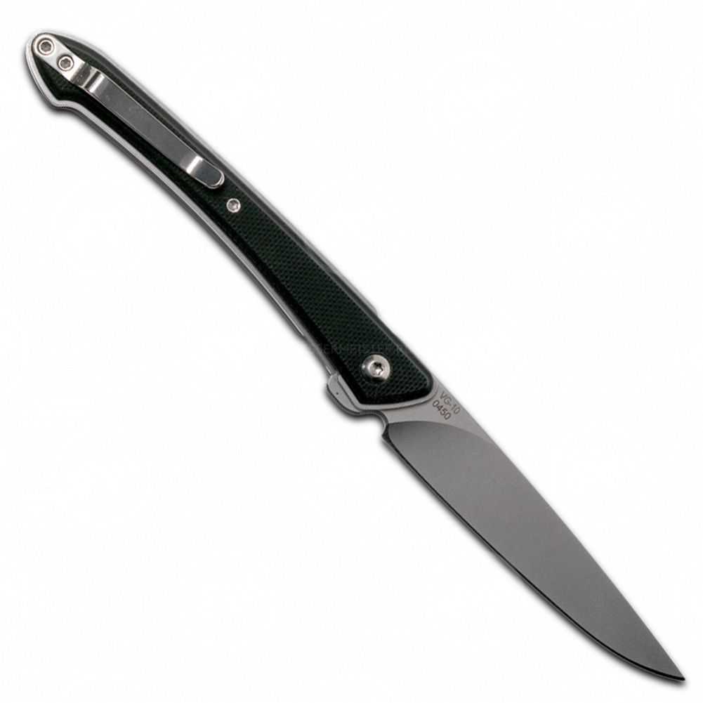 Для изготовления клинка этого ножа использована японская сталь VG-10. Эта сталь широко используется для изготовления кухонных ножей премиального класса в самой Японии, а компанией Boker постоянно делает из неё клинки джентльменских складных ножей. Для Spillo это хороший выбор, так как клинок закалён на довольно высокую твёрдость в 61 единицу по шкале Роквелла, что удобно для столового ножа, который вы постоянно носите с собой, и крайне редко встречается на обыкновенных столовых приборах.
