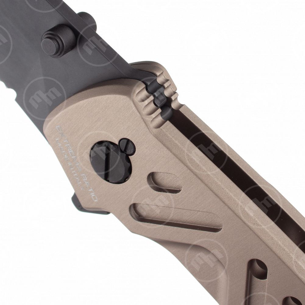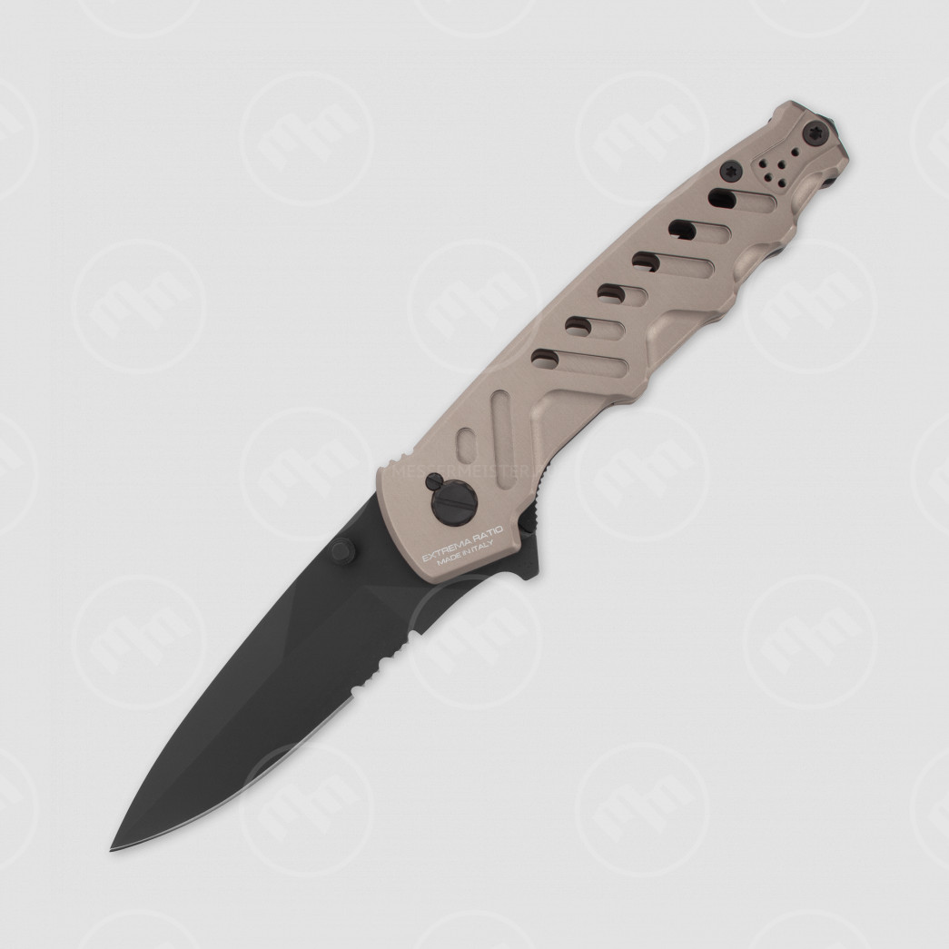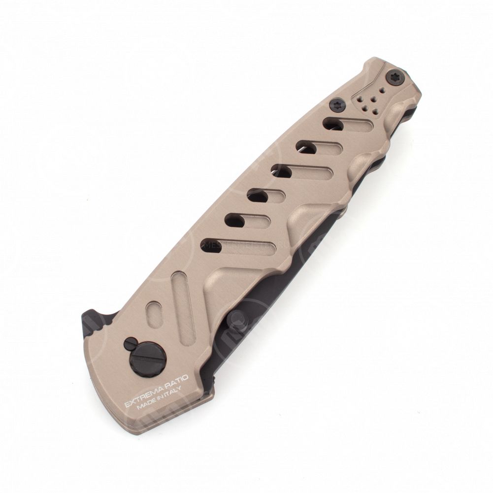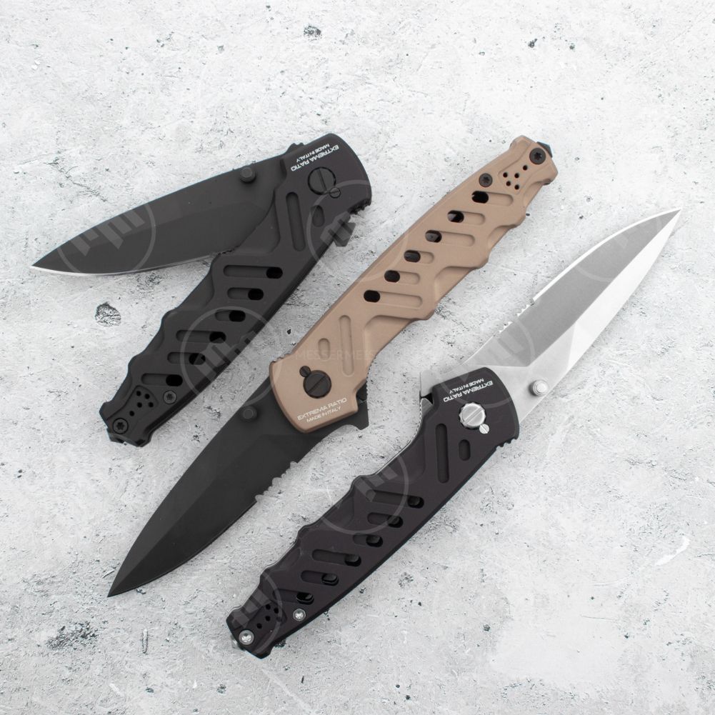 Для продления срока службы используется прочнейший материал — специальный алюминиевый сплав. Материал лезвия — высококлассная нержавеющая сталь. Матовое покрытие выглядит стильно и защищает металл от воздействий окружающей среды. Внешний вид складных ножей Extrema Ratio имеют явную военную направленность, что является не просто дизайном — компания поставляет оружие блоку НАТО.