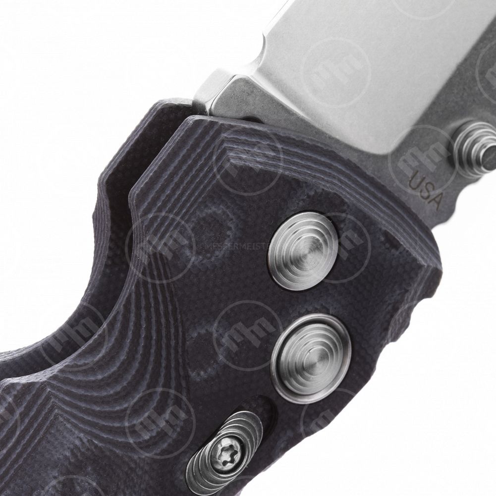 Рукоять ножа изготовлена из вариации стеклотекстолита G-10, которая также как и сам нож была придумана Элишевицем и называется G-Mascus. Это название зарегистрировано как еще один торговый знак компании Hogue, поэтому материал не встречается на изделиях других производителей. Своё название материал получил за сходство рисунка с дамасскими сталями. С эстетической точки зрения рукояти ножей из такого материала выглядят чрезвычайно красиво и уместно, а тесты показывают, что эта версия G-10 прочнее, чем та, которую обычно используют для изготовления накладок на рукоятях ножей. Благодаря этому свойству G-Mascus, нож лишён каких-бы то ни было лайнеров, но достаточно прочен, что бы выполнять самую тяжелую работу.