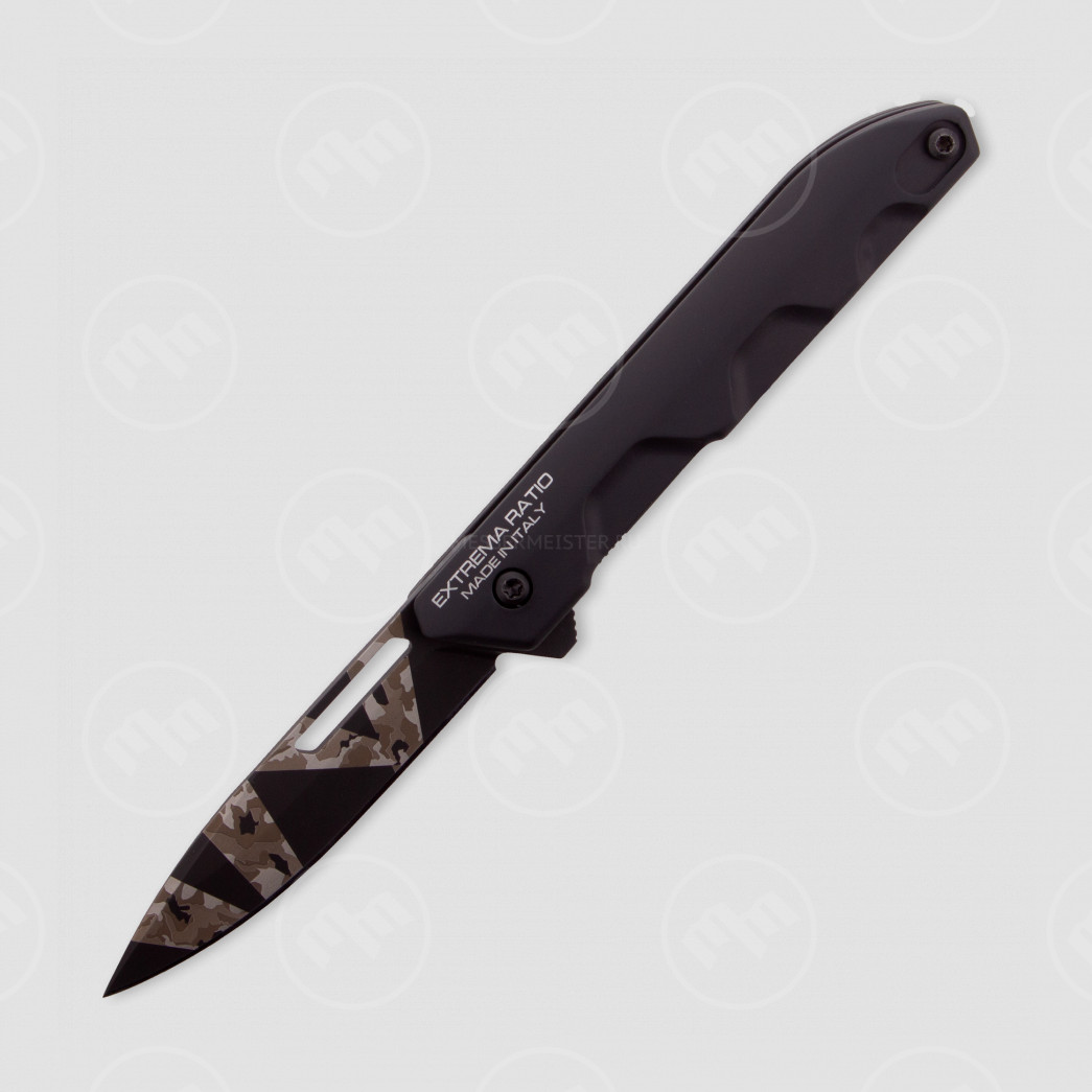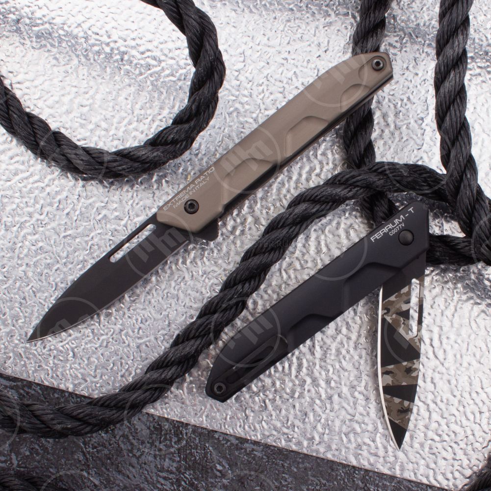 Для продления срока службы используется прочнейший материал — специальный алюминиевый сплав. Материал лезвия — высококлассная нержавеющая сталь. Матовое покрытие выглядит стильно и защищает металл от воздействий окружающей среды. Внешний вид складных ножей Extrema Ratio имеют явную военную направленность, что является не просто дизайном — компания поставляет оружие блоку НАТО.