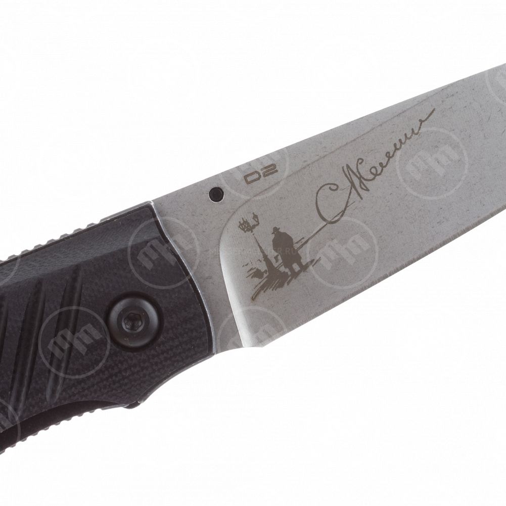 В первую очередь необходимо отметить очередную коллаборацию Mr.Blade, на этот раз с известным российским актёром Сергеем Селиным. Нож «SHOT» получил на свой клинок гравировку с автографом актёра и небольшую имиджевую картинку, на которой каждый легко узнает одного из героев известного сериала, которого играл Сергей Селин. В остальном это типичный нож Mr.Blade – гладкие накладки из пластика G10 нескольких цветов, сталь D2, рабочее покрытие stonewash или blackwash на клинке, длина клинка почти десять сантиметров и привычный замок лайнер-лок. Здесь же стоит упомянуть модели «Hit» и «Bang», в которых с предыдущим ножом совпадают и материалы, и многие габаритные размеры, и даже общие очертания ножей перекликаются между собой. Здесь вы сможете выбрать какой нож нравится вам больше чисто внешне или лучше сидит в руке. С функциональной точки зрения это очень похожие друг на друга инструменты и чем удобнее пользоваться лично Вам это дело вкуса. Впрочем, для кого-то будет важно получить именно нож с автографом актёра и тогда выбор будет заранее предрешён.