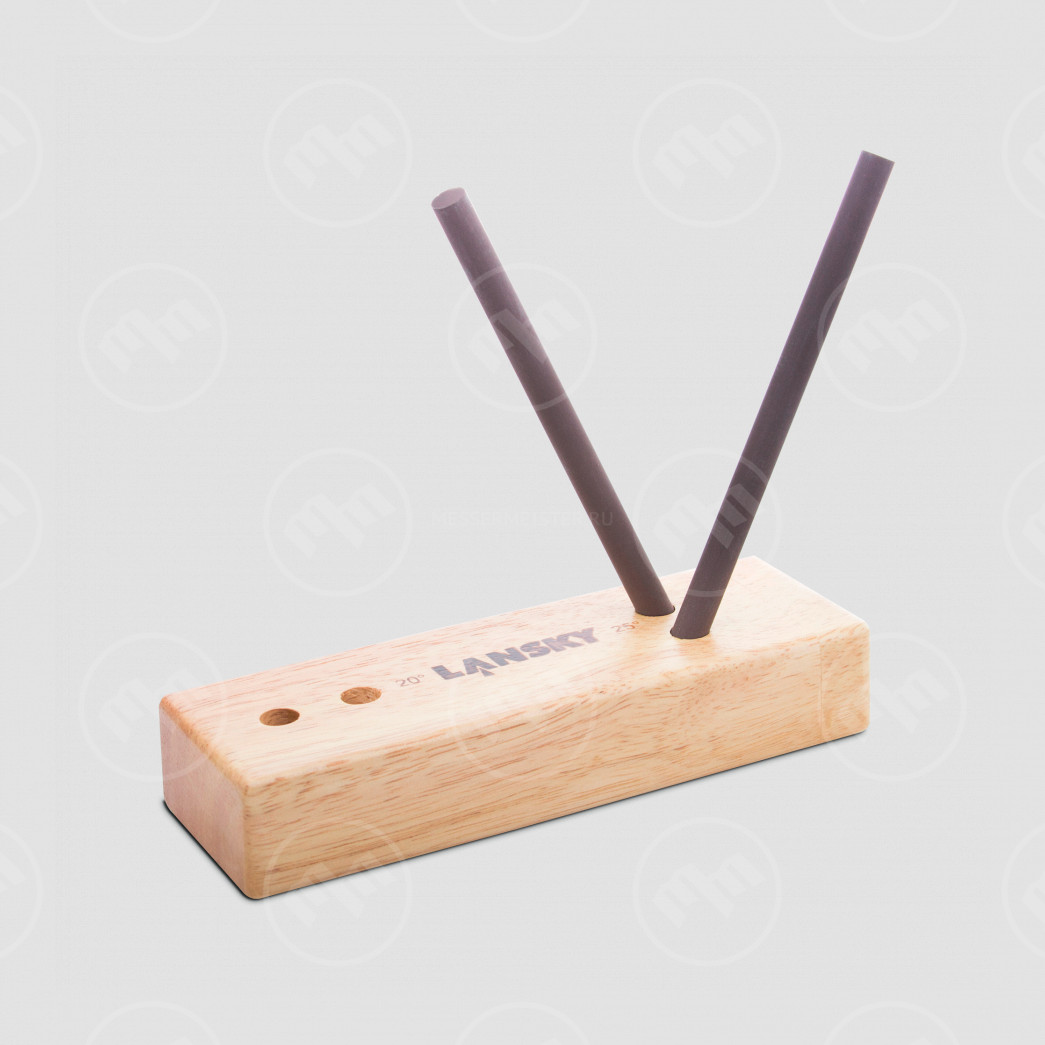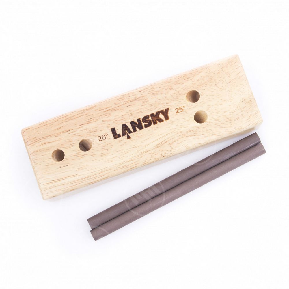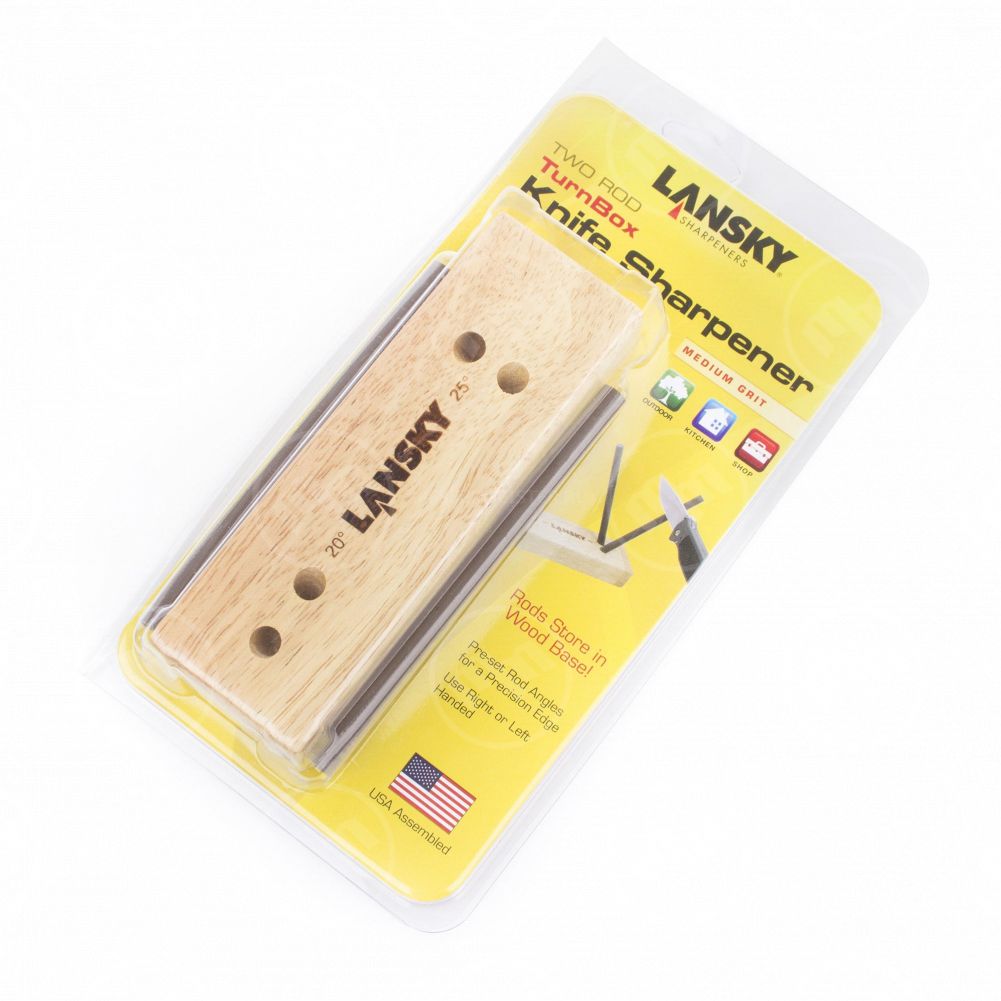 Одной из наиболее популярных серий точильных приспособлений после профессиональных систем заточки является коллекция Turn Box. В нее входят полые четырехгранные коробки, изготовленные из древесины, в верхней пластине которых просверлено четыре отверстия. Они предназначены для установки абразивных стержней, которые располагаются под определенным углом. Это позволяет править режущую кромку с точностью до десятой доли градуса. Большинство моделей коллекции ориентированы на два угла заточки: 25 градусов для стандартных клинков и 20 градусов для тонких лезвий и опасных бритв. В комплект набора могут входить два или четыре точильных стержня с поверхностью различной степени зернистости. Помимо Turn Box, к числу точильных приспособлений от Lansky можно отнести модель Master Edge, предназначенную для затачивания лезвий с прямой и серрейторной режущими кромками. В ее состав входят как цилиндрические, так и трехгранные точильные стержни, а также подставка для точной установки нужного градуса.