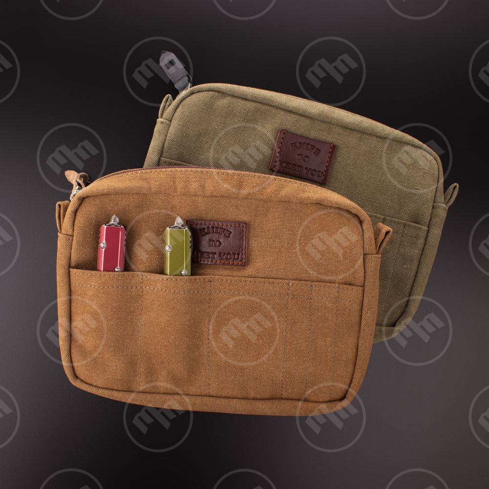 Сумка очень компактна, ножи не соприкасаются друг с другом даже клипсами, а разделитель легко извлекается и превращается в площадку для обслуживания ножа, места в сумке достаточно не только на 11 полноценных складных ножей, но и на 3 ручки и целый набор сопутствующих инструментов.