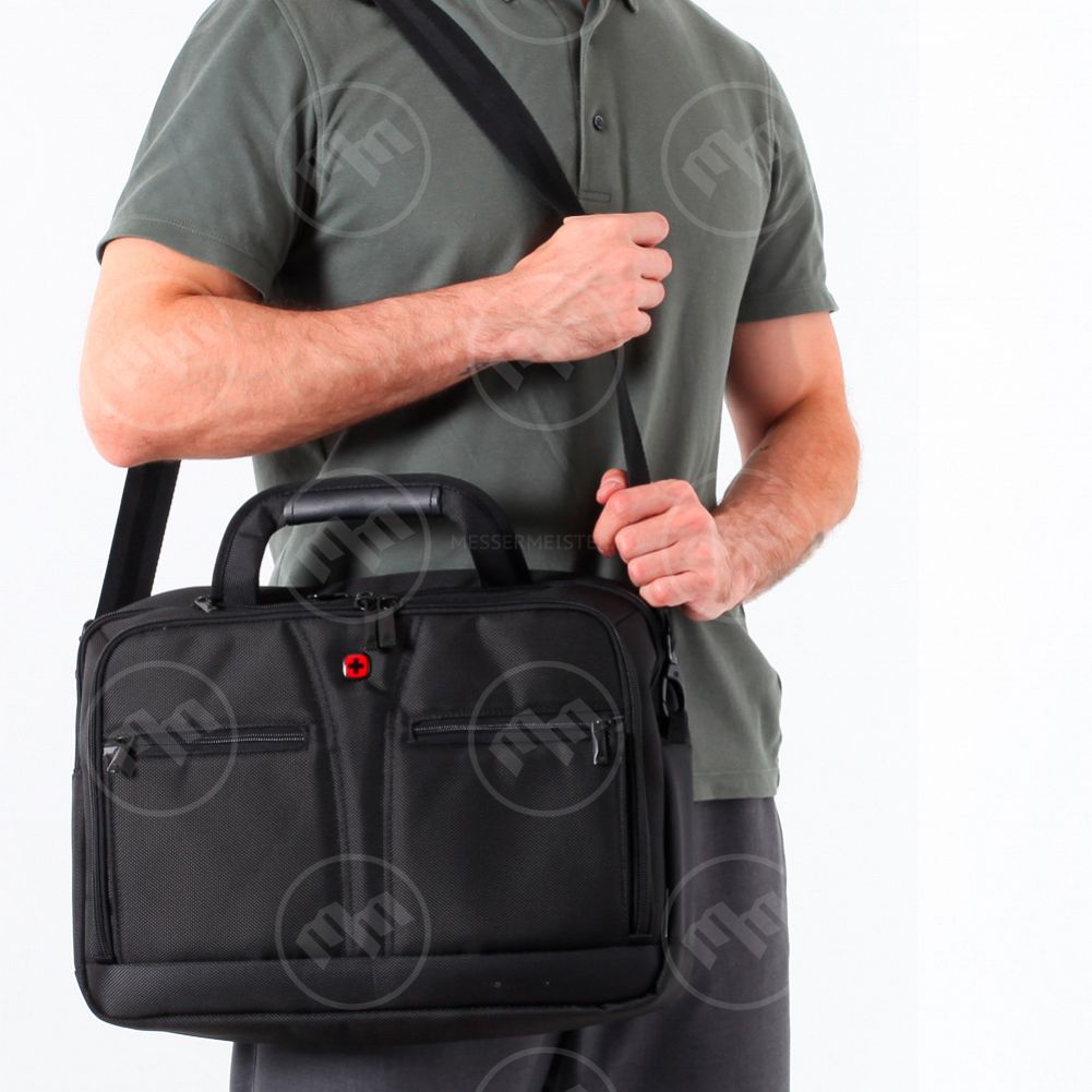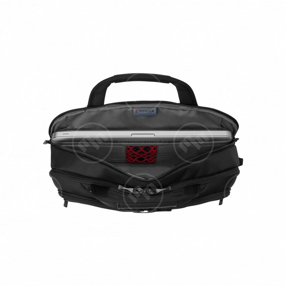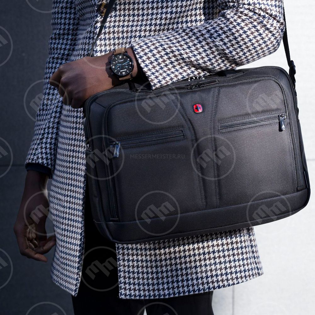 Материал изготовления - баллистический нейлон. Специальное отделение для ноутбука с возможностью расширения от 14 до 16". Карман на молнии в верхней части портфеля предназначен для переноски планшетного компьютера. Карман-органайзер включает ключницу, многочисленные кармашки для пишущих принадлежностей, документов и карты памяти, мобильного телефона, проводов и адаптеров. Два кармана в передней части портфеля подходят для хранения аксессуаров и прочих необходимых вещей. Специальный рукав позволяет зафиксировать сумку на телескопической ручке чемодана для удобного перемещения нескольких предметов багажа. Съемный, регулируемый по длине наплечный ремень с мягкой накладкой.
