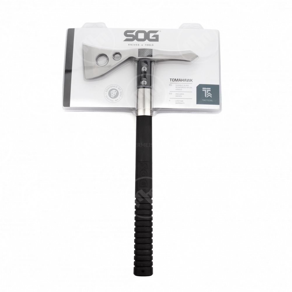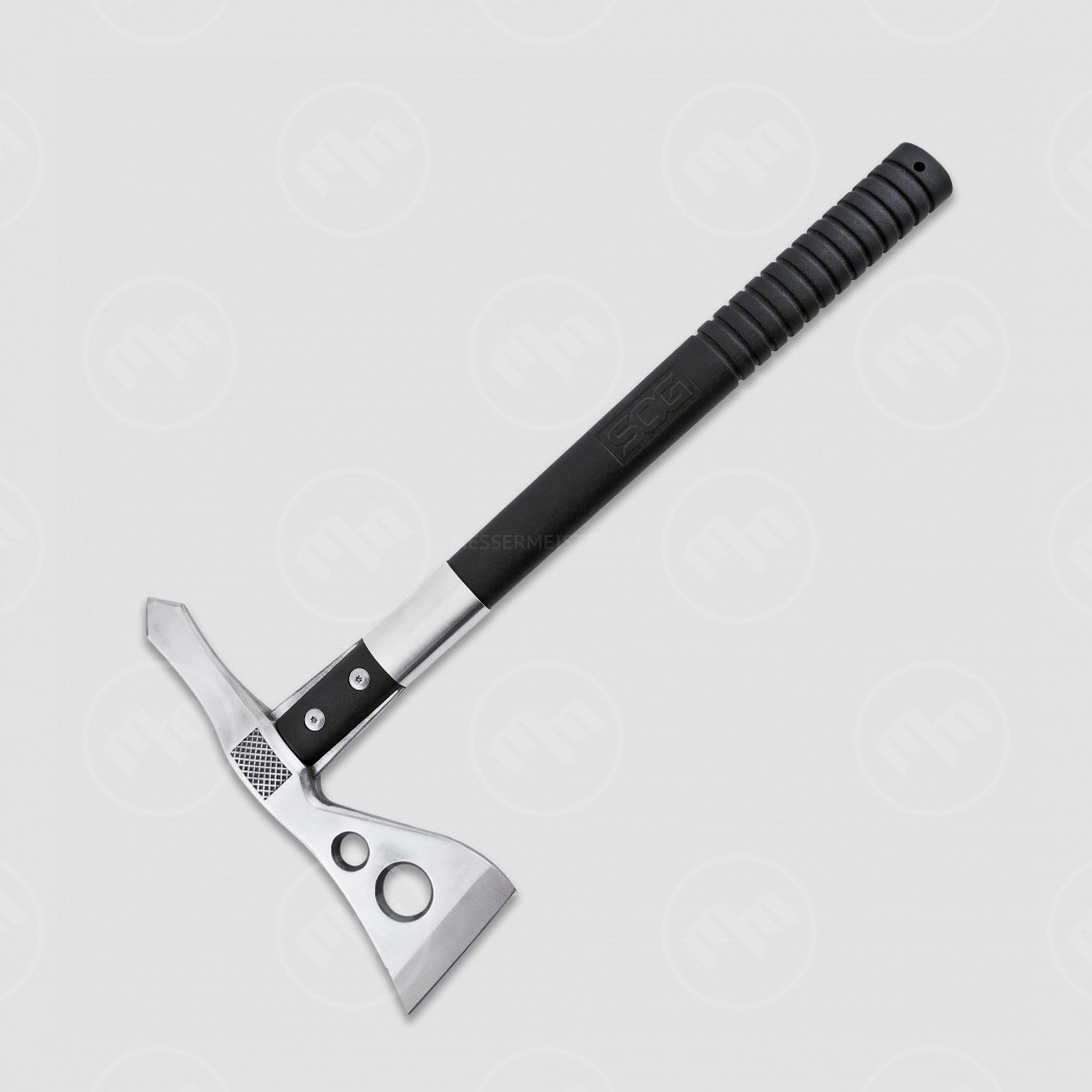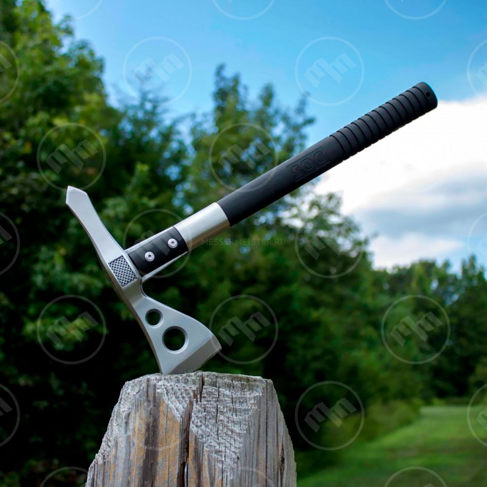 В этот раздел входят походные и тактические топоры, выполненные в нескольких модельных вариациях. В их число входят функциональные томагавки, обух которых оснащен длинным металлическим шипом, одинаково хорошо подходящим для раскалывания твердых материалов и фиксации за почву. Они выпускаются в различных размерах и обладают превосходным балансом, дающим возможность использовать их для метания в значительно удаленную мишеньИзготавливаются топоры от SOG из практичных, надежных материалов. В качестве основы в производстве клинков используются различные виды нержавеющей стали, качественные характеристики которой напрямую зависят от будущего предназначения изделий. Рукояти топоров чаще всего имеют полимерную основу, шероховатая поверхность которой дополняется рельефным протектором, усиливающим степень сцепления ее с рукой. Крепеж в зоне крестовины фиксируется с помощью прочных винтов. Некоторые модели топоров SOG имеют цельнометаллическую конструкцию.