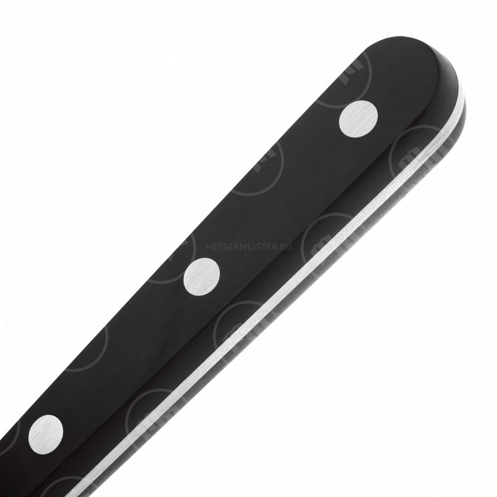 • Clasica — спокойные формы, кованые лезвия из цельного куска стали, округлые рукоятки из термостойкого полиоксиметилена, идеальный баланс. Вы можете приобрести поварской нож, сантоку, обвалочный инструмент, прибор для стейка, хлеба или чистки овощей отдельно и в наборе.