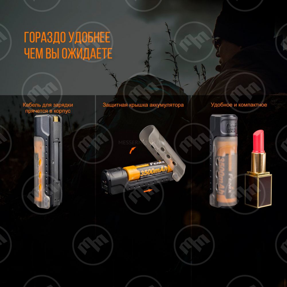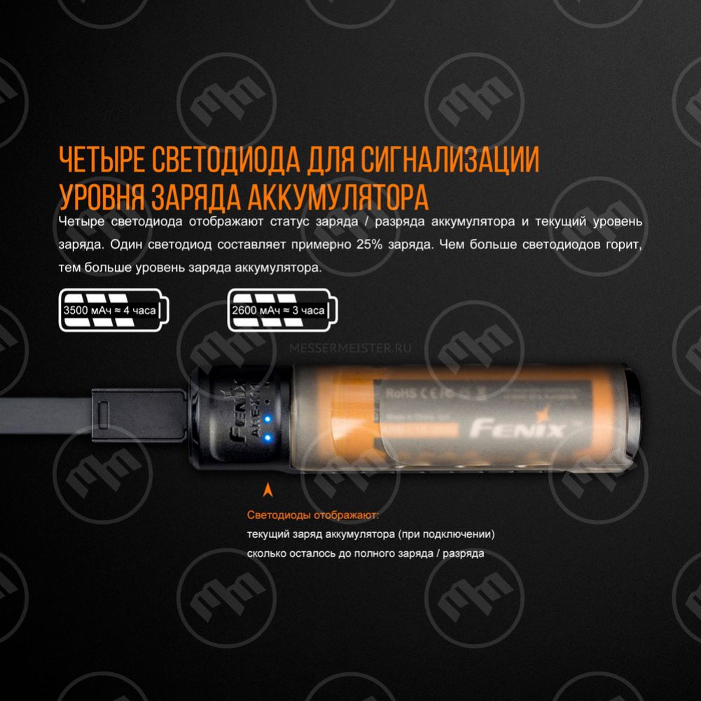 Аккумуляторы надежно защищаются от перегрева и перезарядки. Часть моделей может выдерживать длительное воздействие высоких и низких температур. Грамотно продуманная конструкция рассчитана на большое количество циклов зарядки — у некоторых батарей оно достигает пятисот. Стандартные варианты наполняются энергией с помощью зарядных устройств, но в ассортимент бренда входят модели, оснащенные портом для присоединения шнура USB. Их можно подзарядить в любой момент без дополнительных приспособлений. Зарядные устройства от производителя Fenix также являются неотъемлемыми спутниками карманных и налобных фонарей. Большинство моделей, разрабатываемых брендом, двухканальны. При размещении аккумулятора в гнезде прибор сам определяет необходимый режим работы. К источнику питания зарядные устройства подключаются через вход microUSB с помощью шнура, подсоединяемого к USB-порту. Для контроля над процессом они оснащаются индикаторами, показывающими процент наполнения батарей.