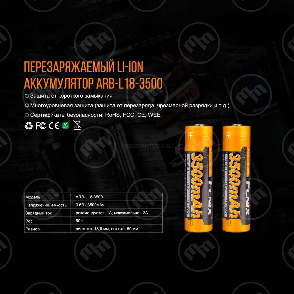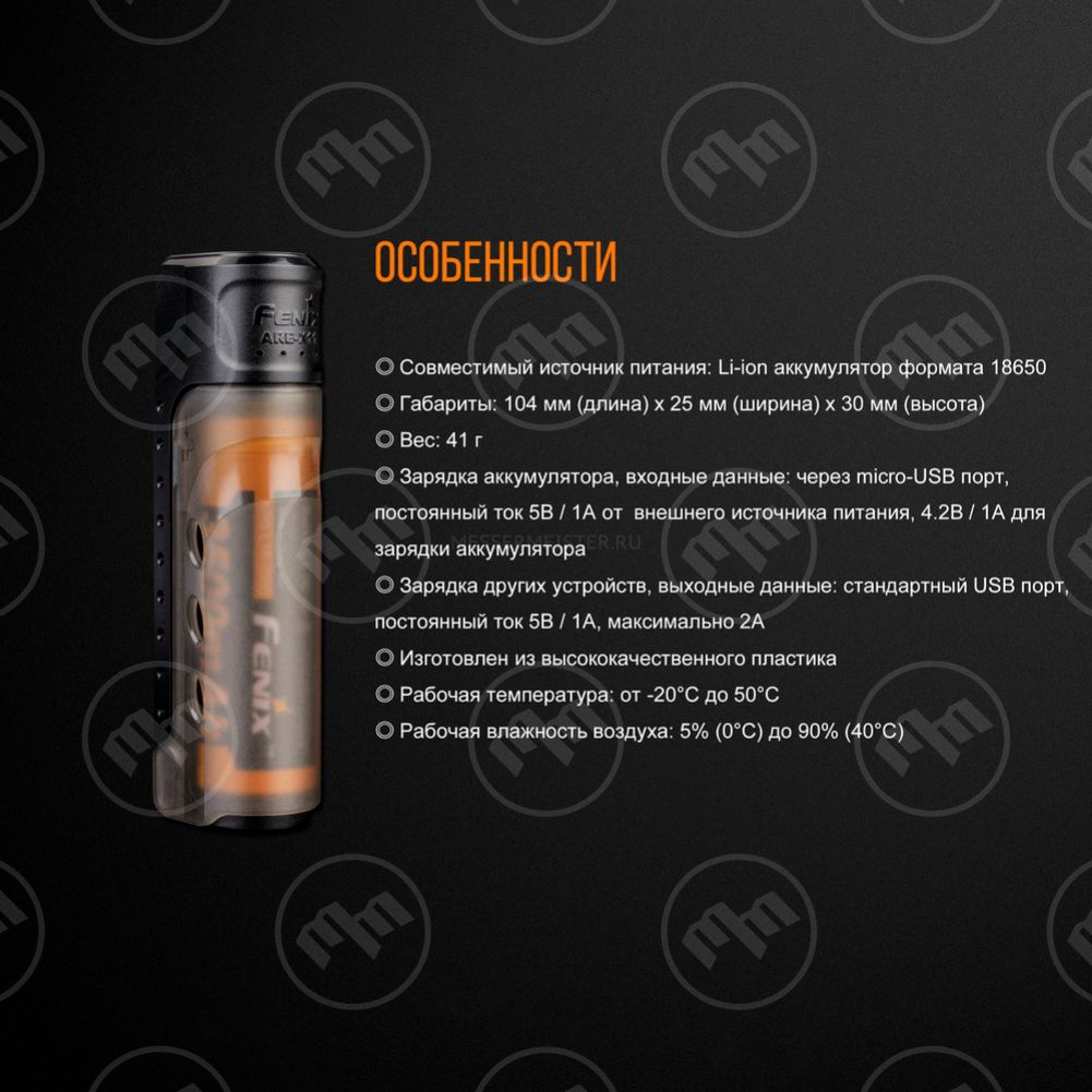 • Предназначено для литий-ионного аккумулятора 18650