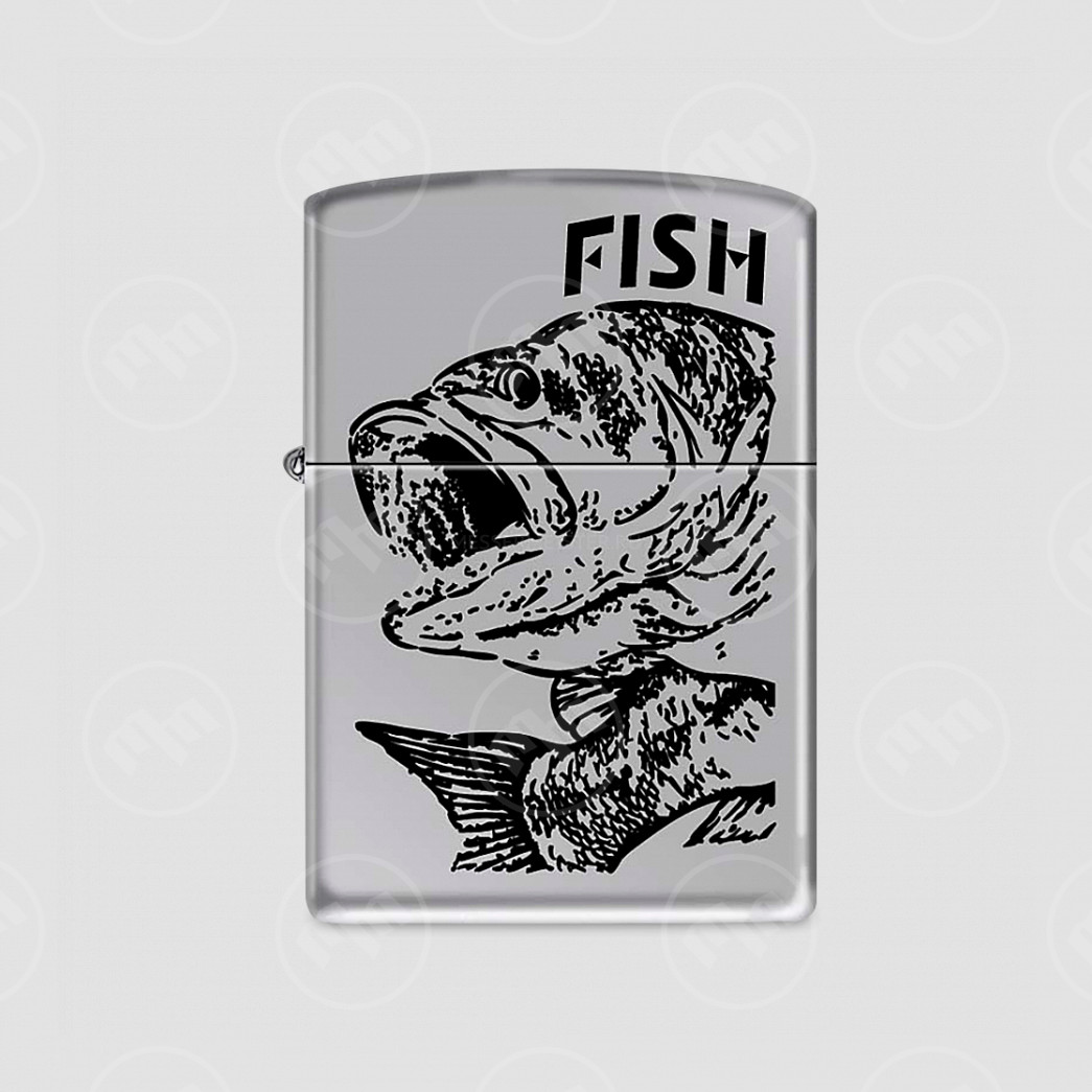 Зажигалка Чёрный окунь High Polish Chrome, ZIPPO-250 FISH - BIG MOUTH, ZIPPO