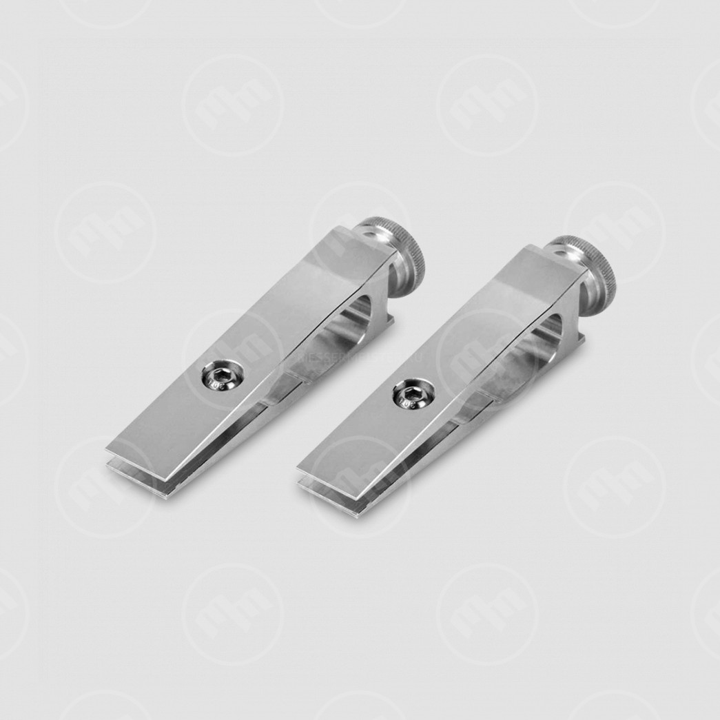Зажимы изготовлены из цельного куска авиационного алюминия, позволяют подстраивать зажим под любую форму клинка и обеспечивать симметричность установки. Благодаря двум точкам захвата, прогиб лезвия исключен. Есть возможность независимого перемещения зажимов, по всей длине рамки. Отсутствует необходимость калибровки. С этими зажимами становится возможным заточка ножей со «скандинавскими спусками» по линии спусков. Подходят для кухонных и филейных ножей с узким обухом, ножей-брелков, опасных бритв, ножей со «сканди-спусками» и т.п.
